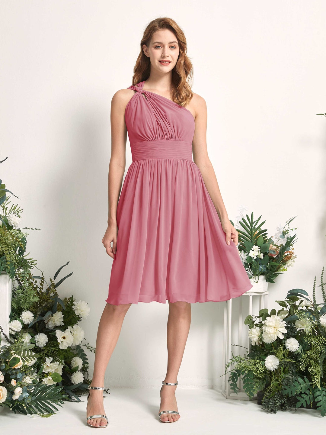 Desert Rose Chiffon A-Line One Shoulder Strappy Back Dress