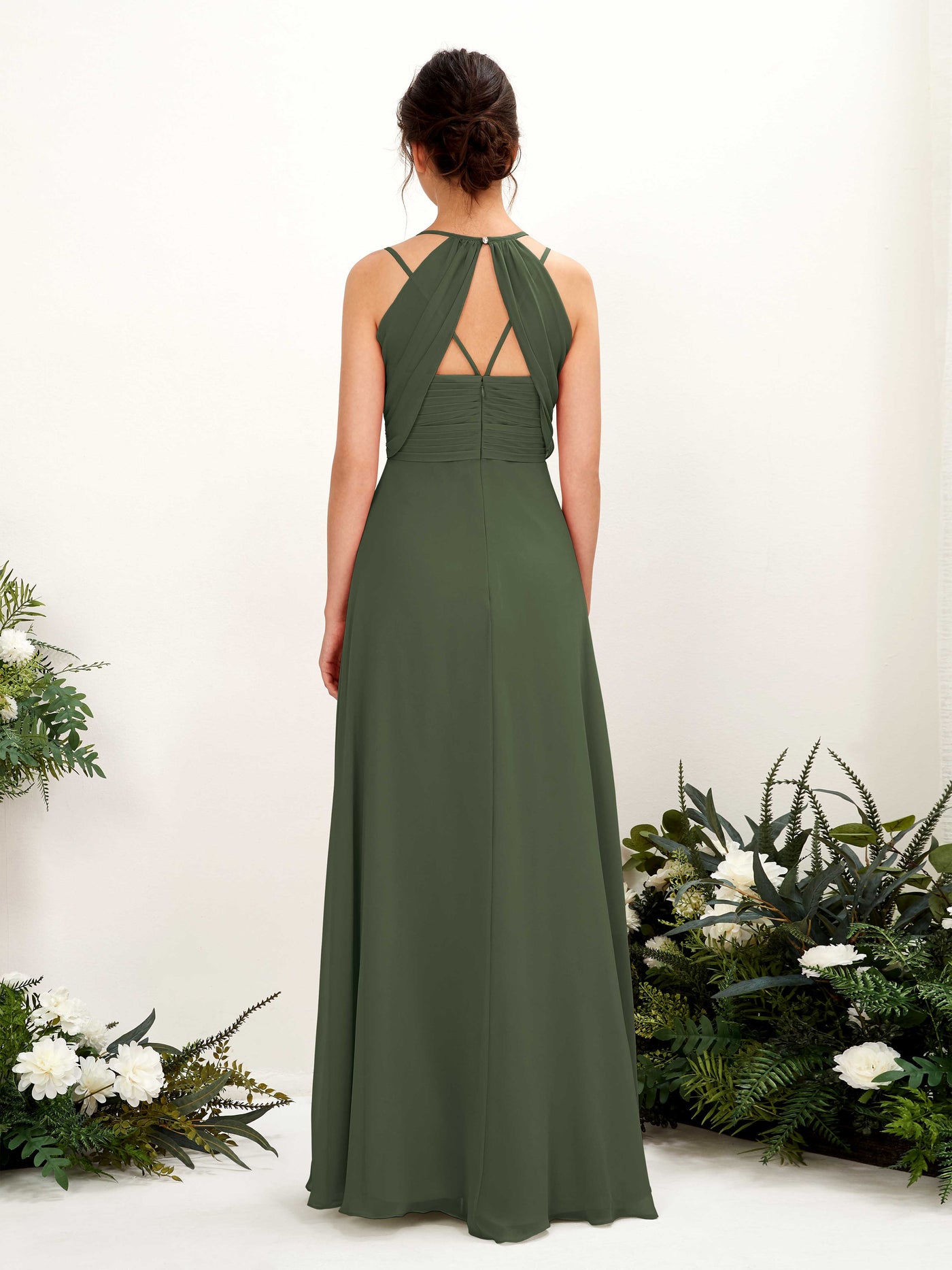 Carlyna Joa A-Line Martini Olive Bridesmaid Dress Maxi Sleeveless V-Neck Dress Back View