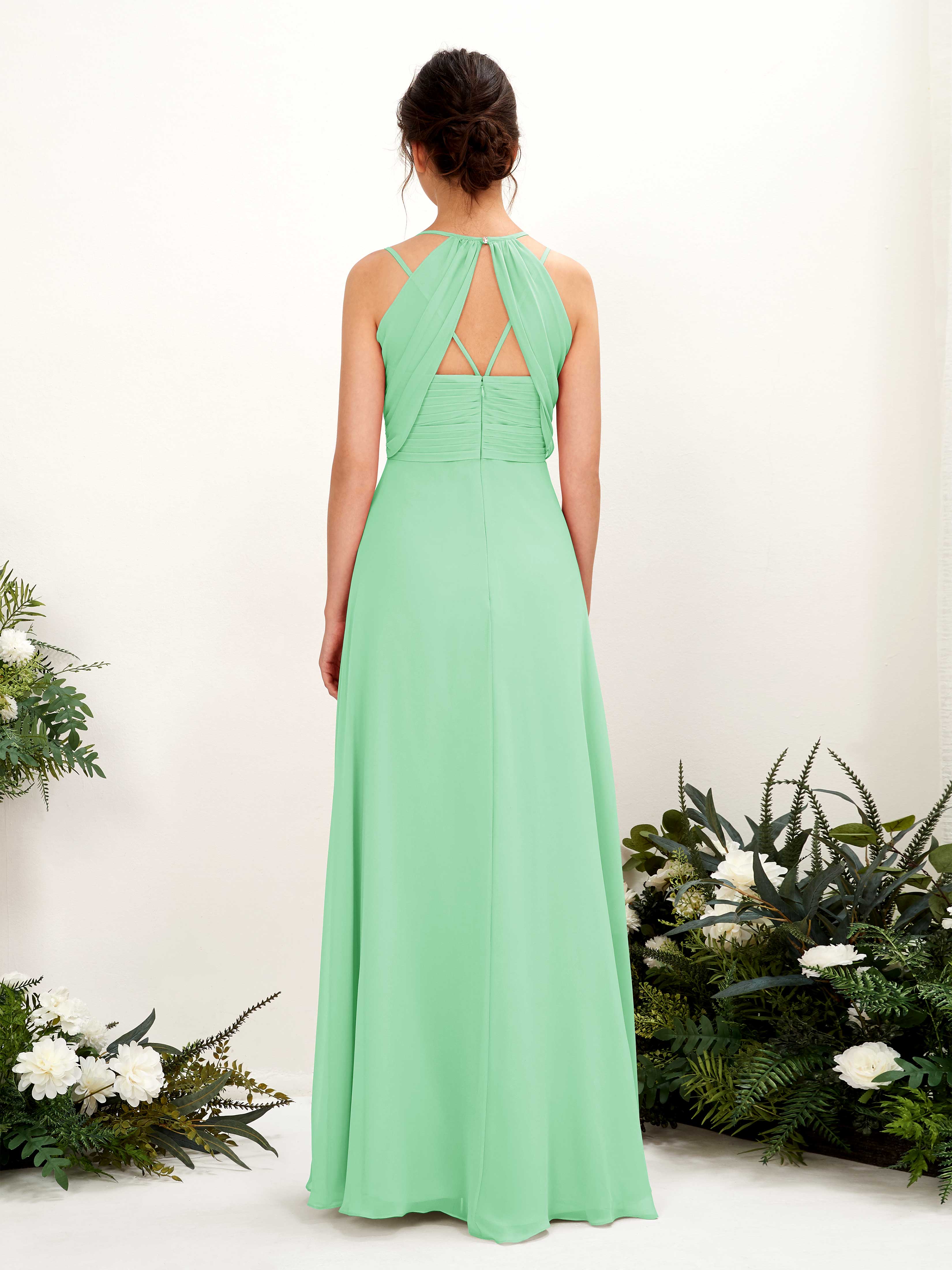 Carlyna Joa A-Line Mint Green Bridesmaid Dress Maxi Sleeveless V-Neck Dress Back View