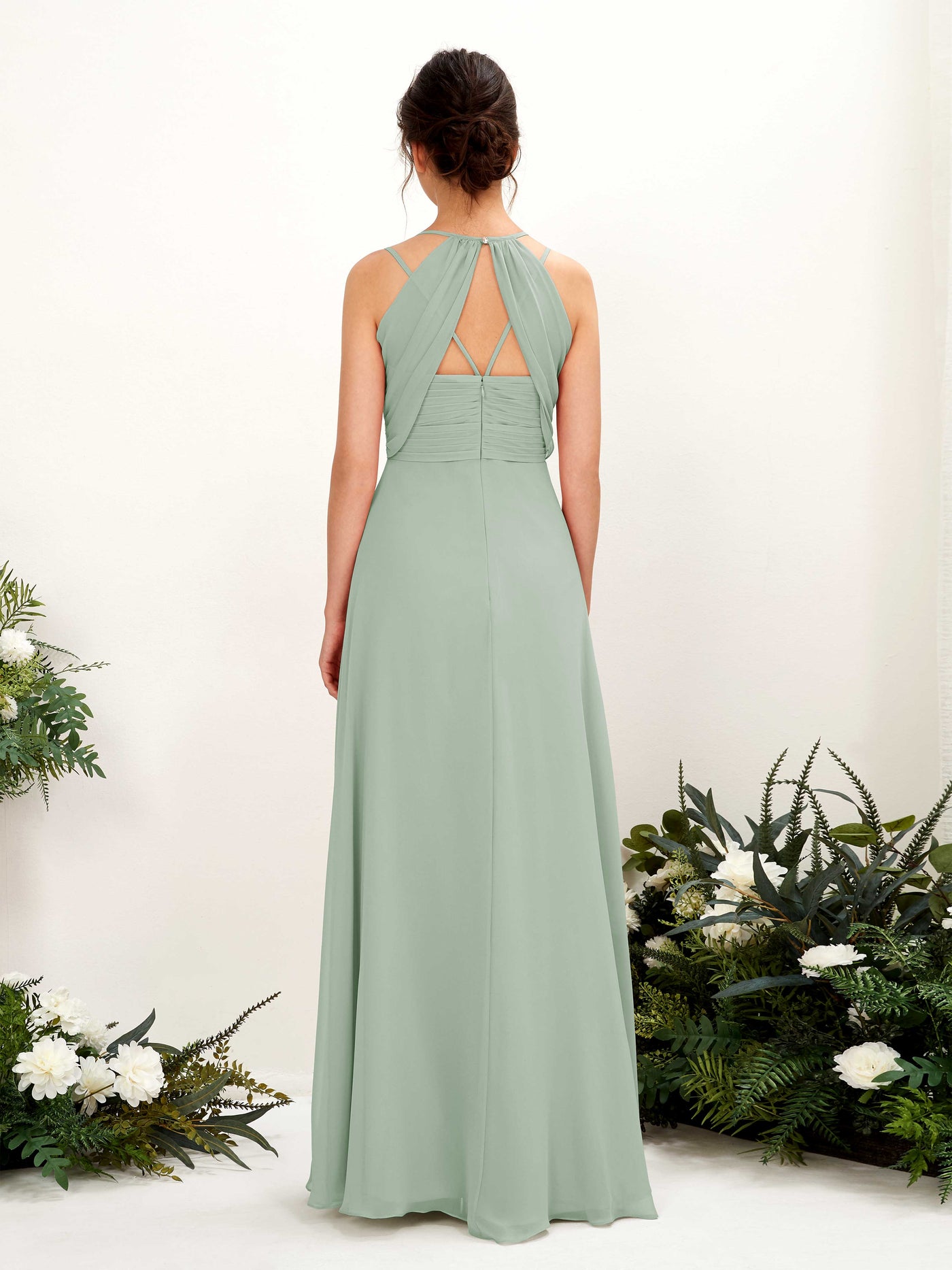 Carlyna Joa A-Line Sage Green Bridesmaid Dress Maxi Sleeveless V-Neck Dress Back View