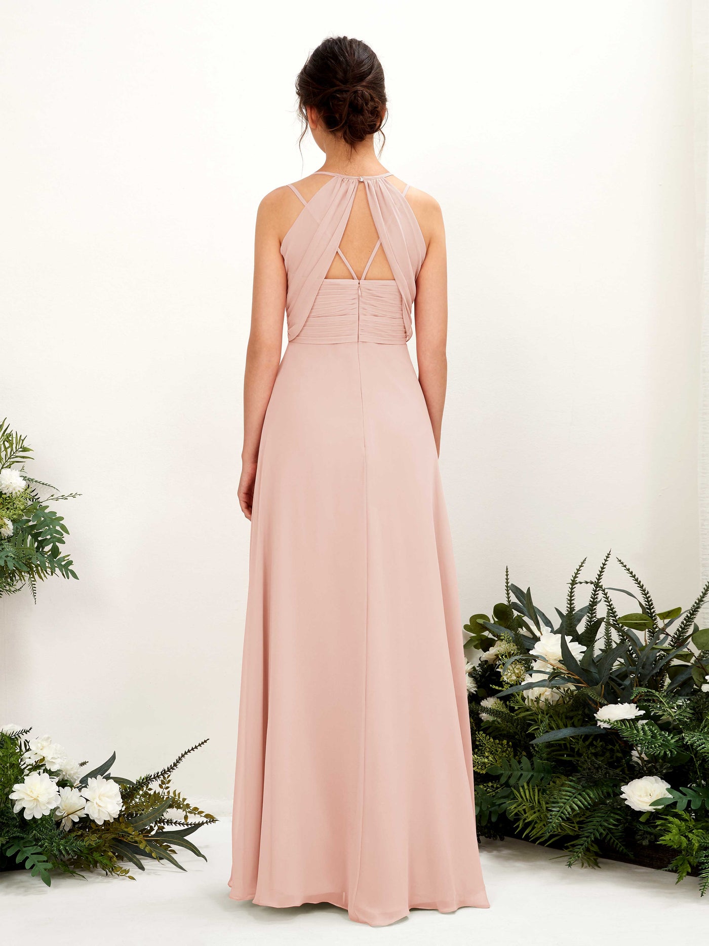 Carlyna Joa A-Line Champagne Rose Bridesmaid Dress Maxi Sleeveless V-Neck Dress Back View