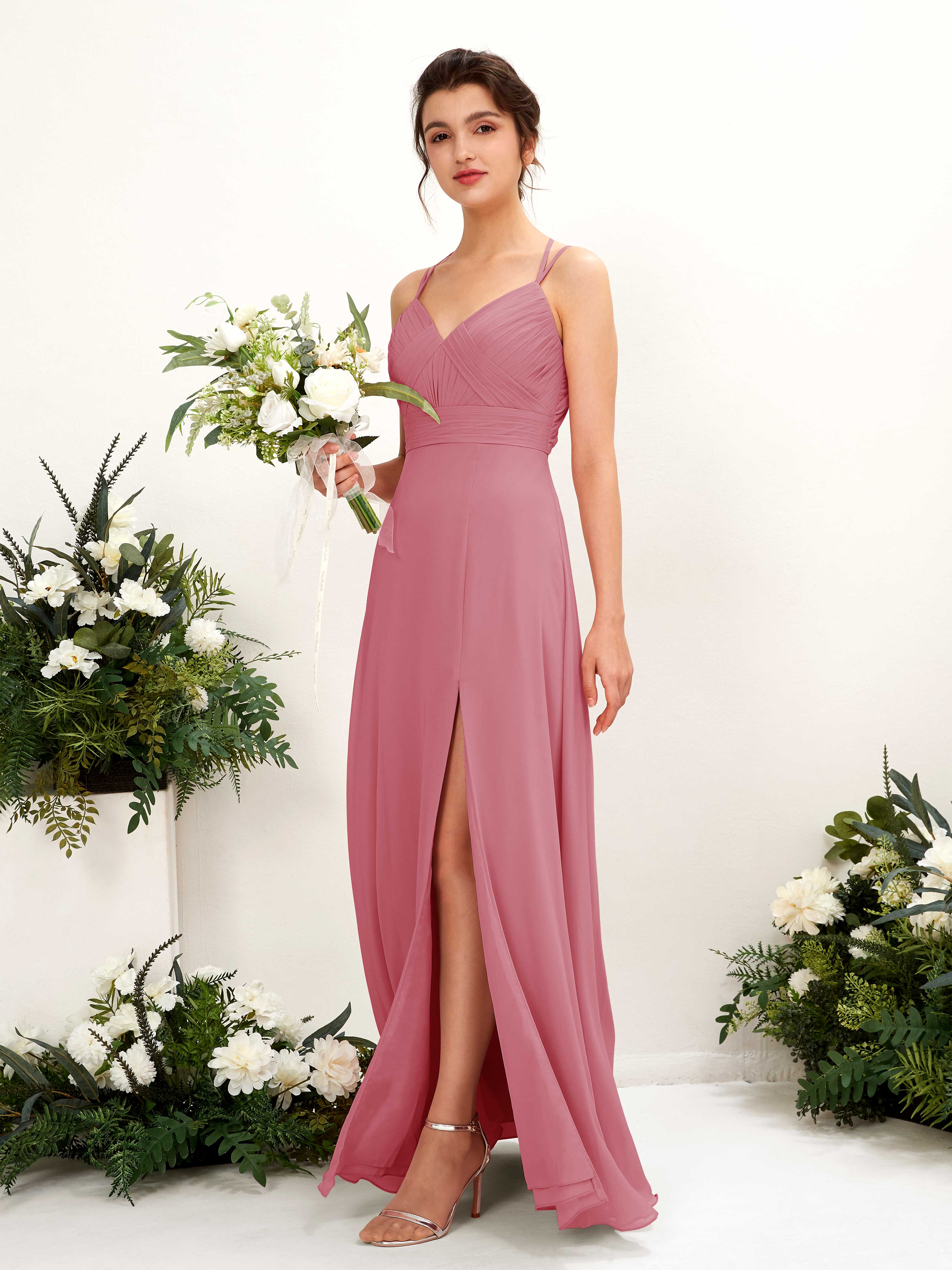 Carlyna Joa A-Line Dusty Rose Bridesmaid Dress Maxi Sleeveless V-Neck Dress Front View