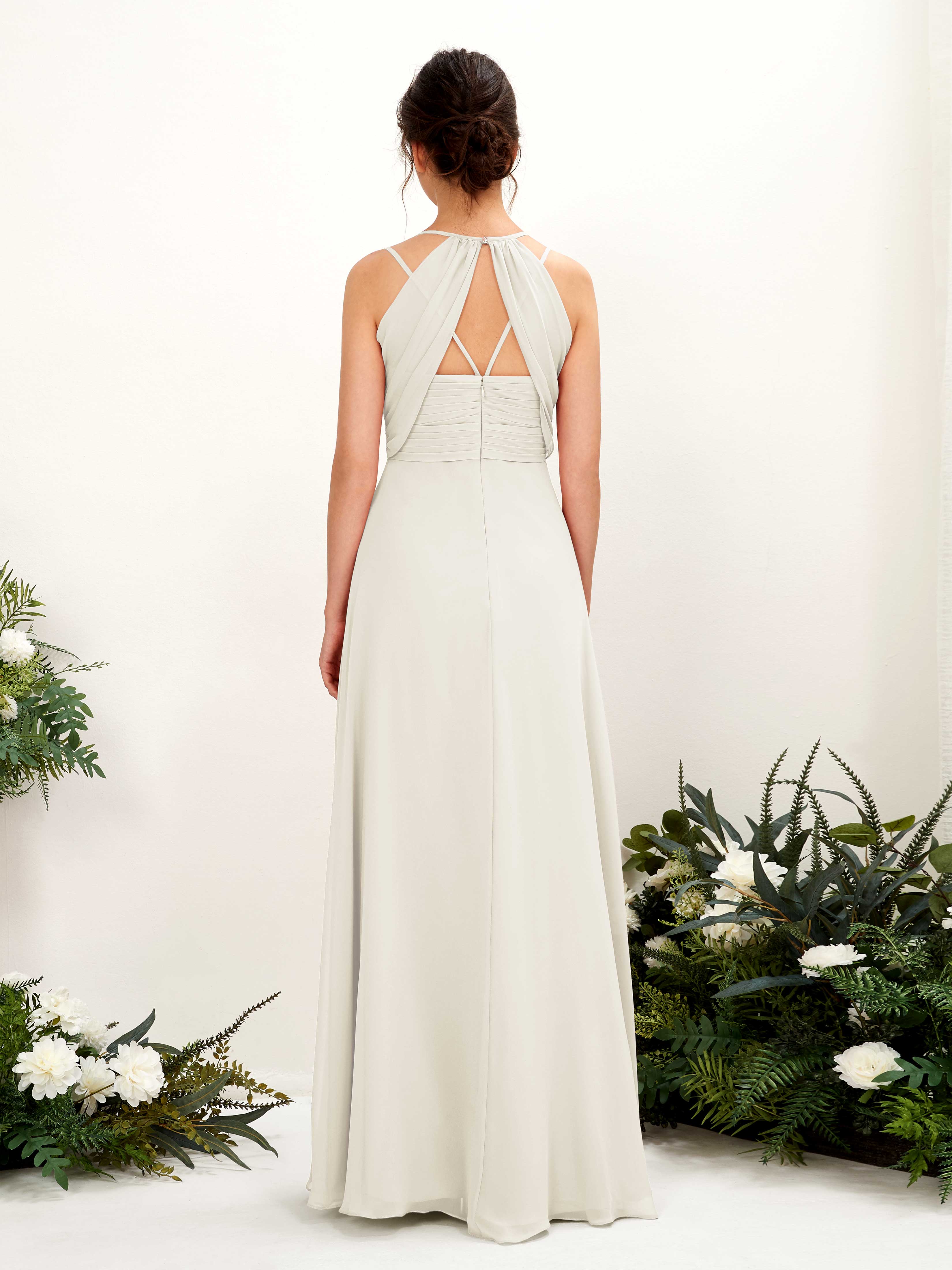 Carlyna Joa A-Line Ivory Bridesmaid Dress Maxi Sleeveless V-Neck Dress Back View