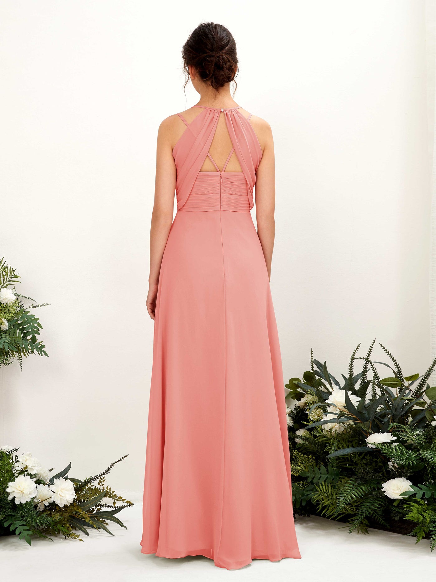 Carlyna Joa A-Line Coral Pink Bridesmaid Dress Maxi Sleeveless V-Neck Dress Back View