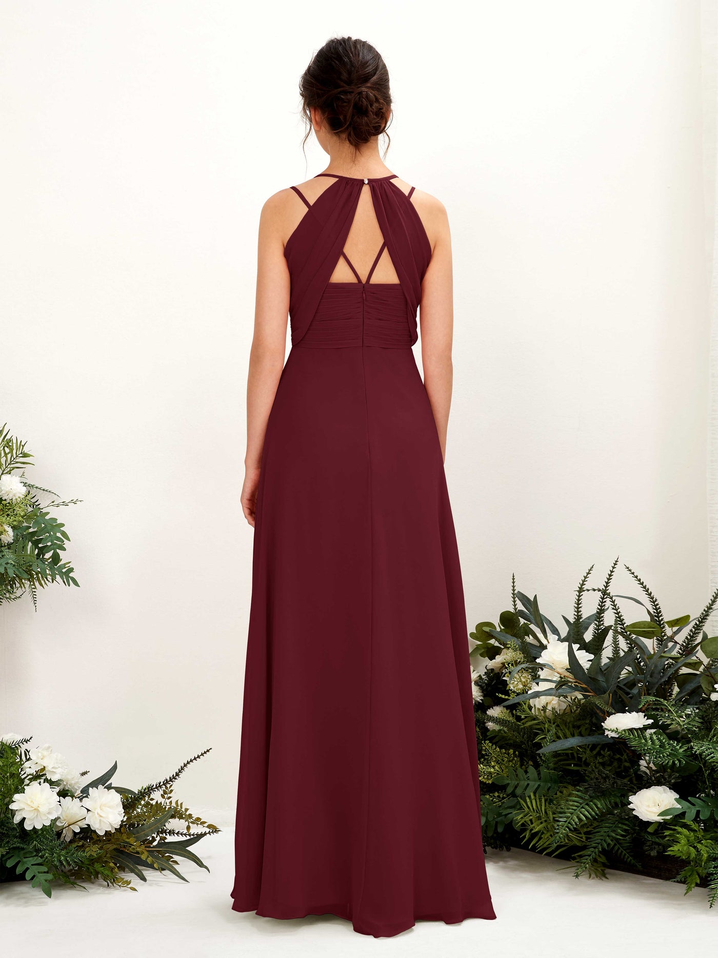 Carlyna Joa A-Line Burgundy Bridesmaid Dress Maxi Sleeveless V-Neck Dress Back View
