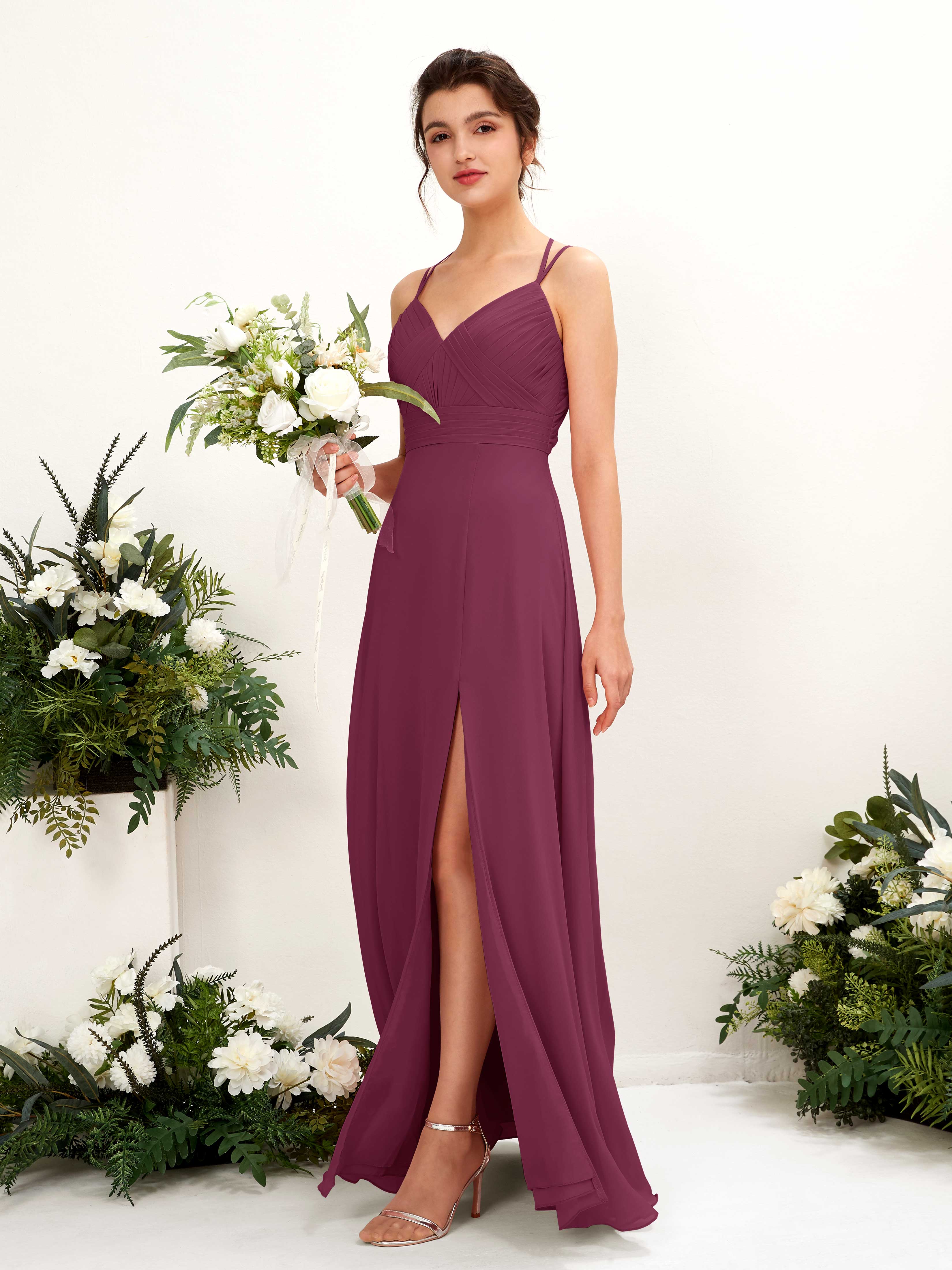 Carlyna Joa A-Line Chianti Bridesmaid Dress Maxi Sleeveless V-Neck Dress Front View