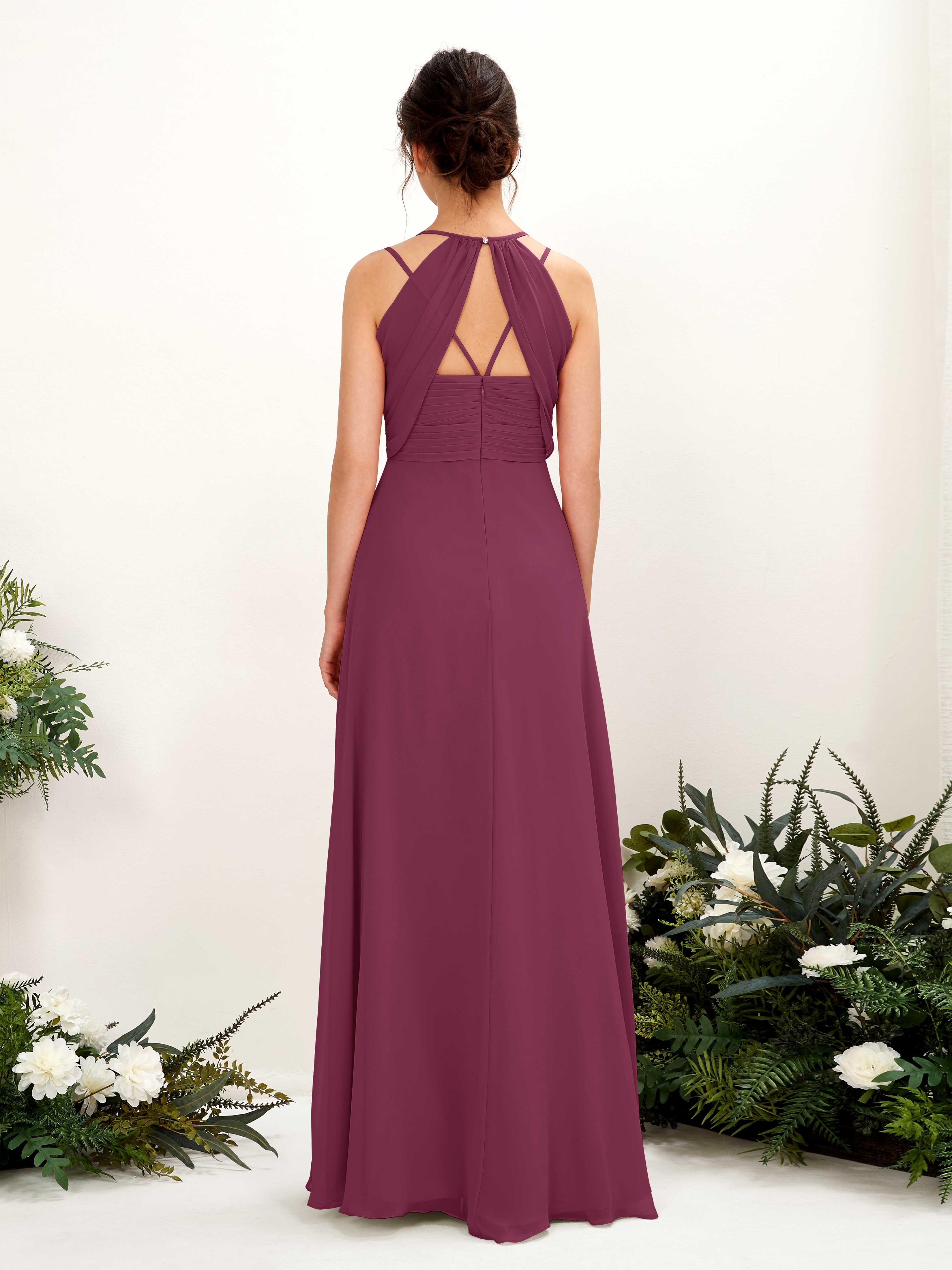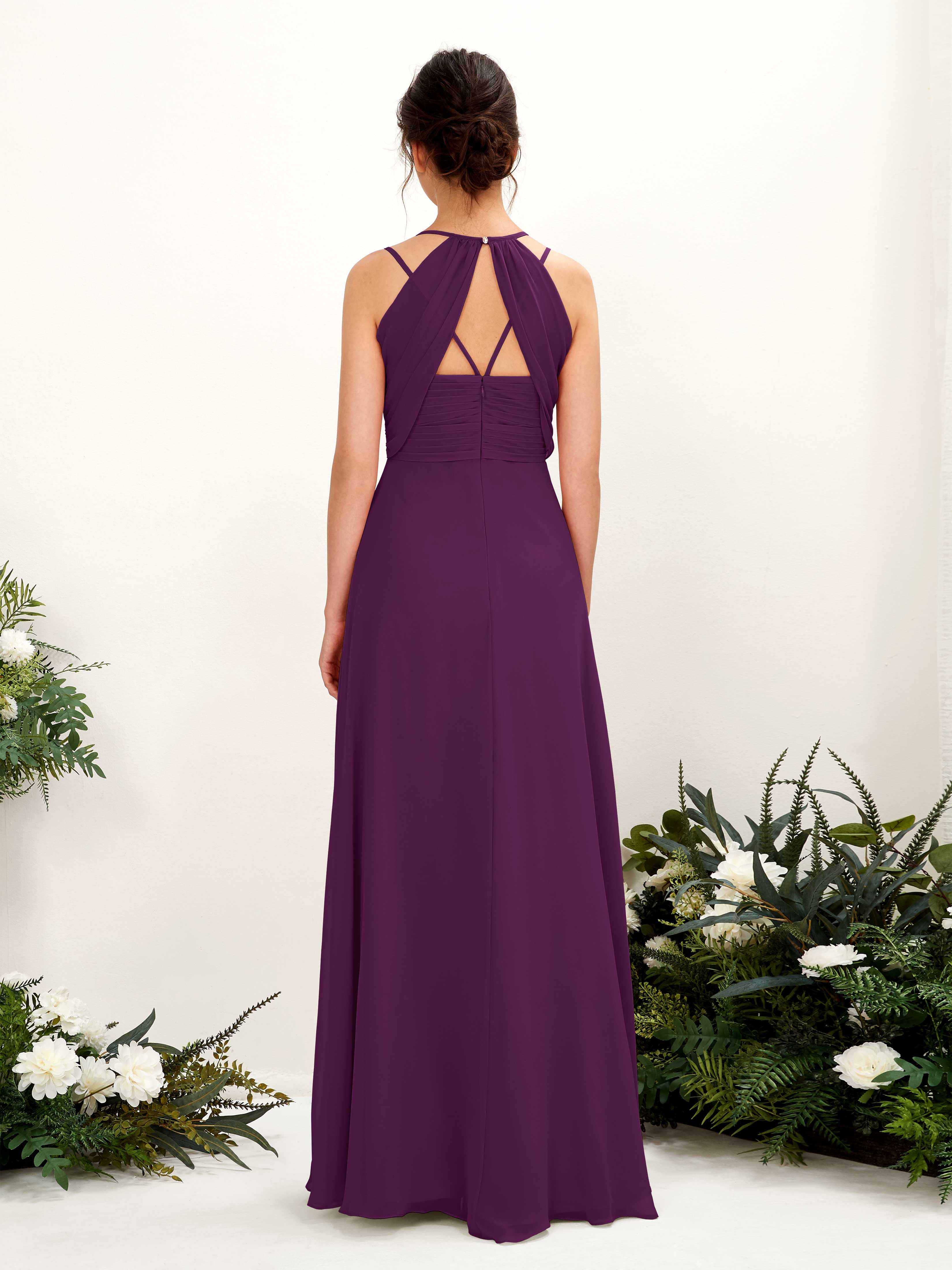 Grape Chiffon A-Line V-Neck Strappy Back Maxi Dress