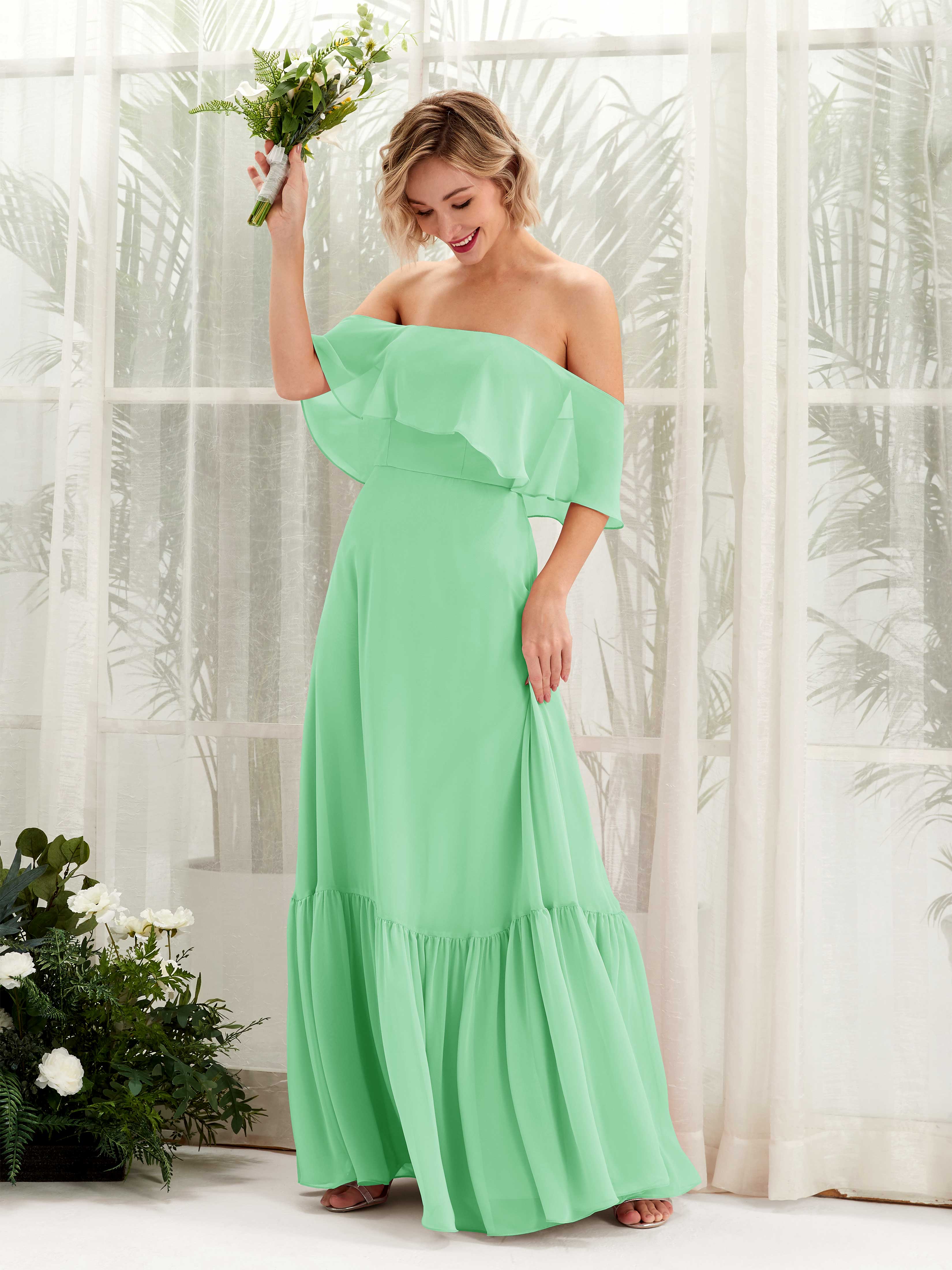 Carlyna Joie A-Line Mint Green Bridesmaid Dress Maxi Sleeveless Off the Shoulder Dress Front View
