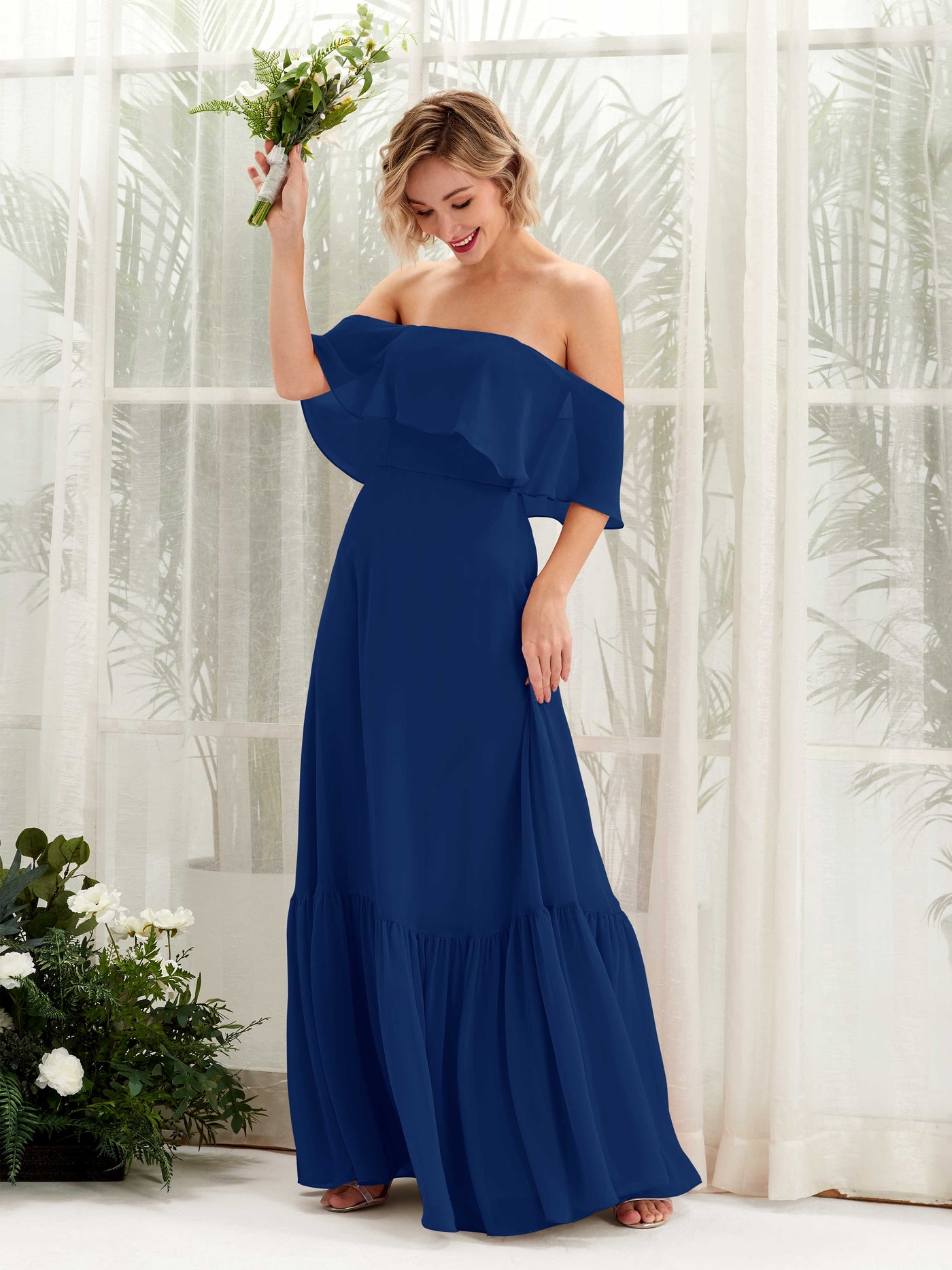 Carlyna Joie A-Line Royal Blue Bridesmaid Dress Maxi Sleeveless Off the Shoulder Dress Front View