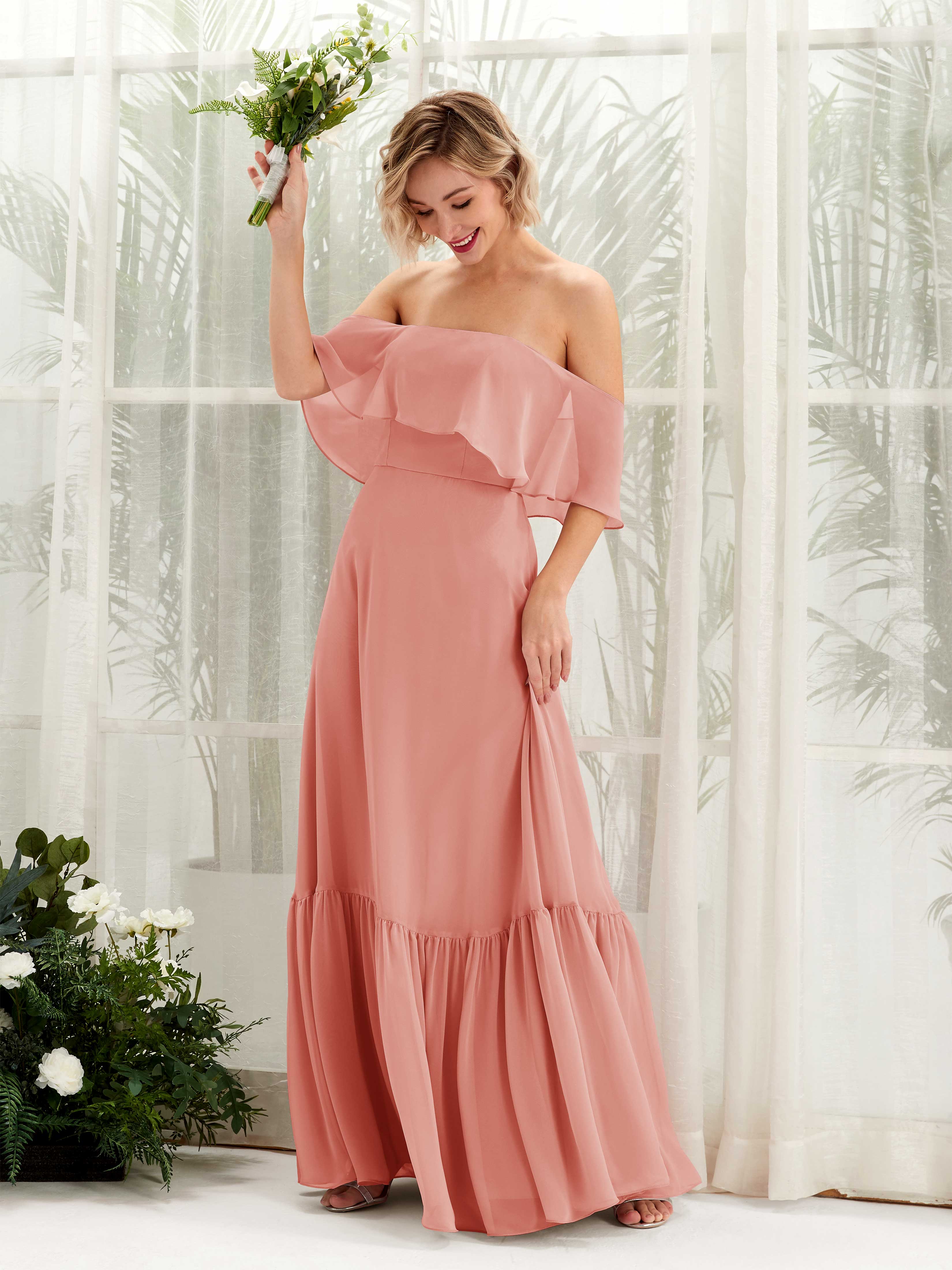 Carlyna Joie A-Line Desert Rose Bridesmaid Dress Maxi Sleeveless Off the Shoulder Dress Front View