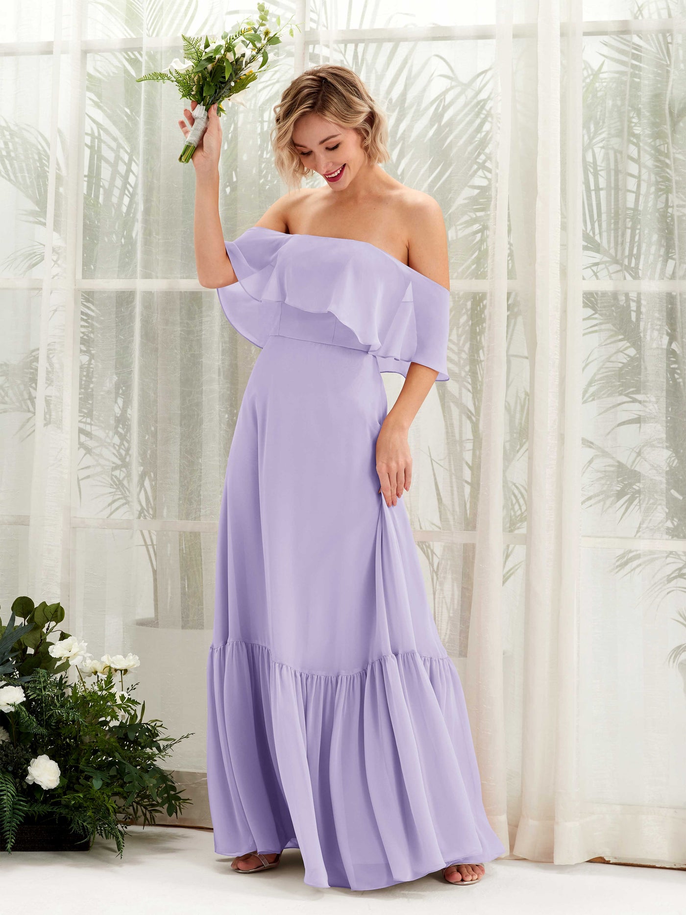 Carlyna Joie A-Line Lilac Bridesmaid Dress Maxi Sleeveless Off the Shoulder Dress Front View