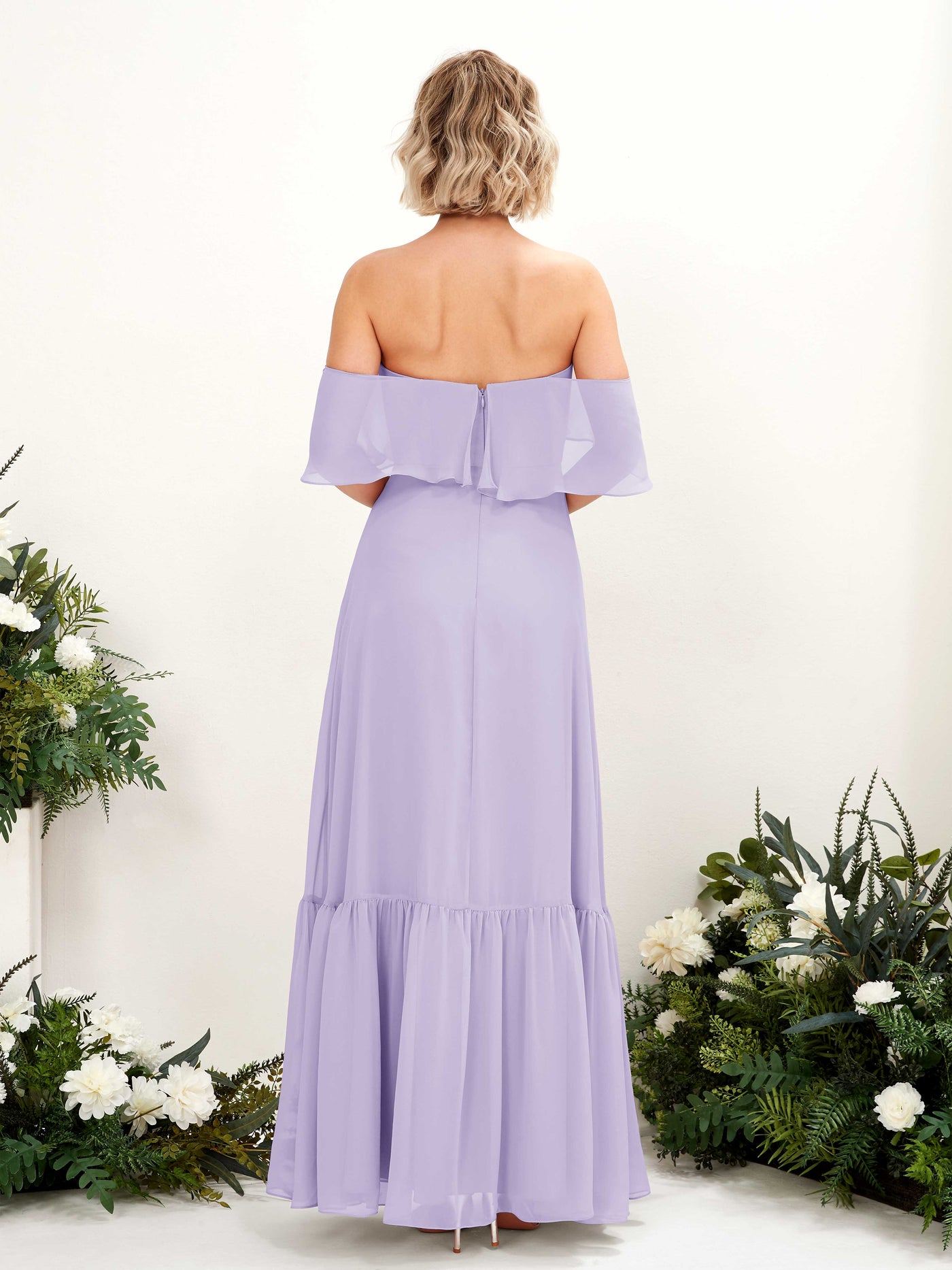 Carlyna Joie A-Line Lilac Bridesmaid Dress Maxi Sleeveless Off the Shoulder Dress Back View