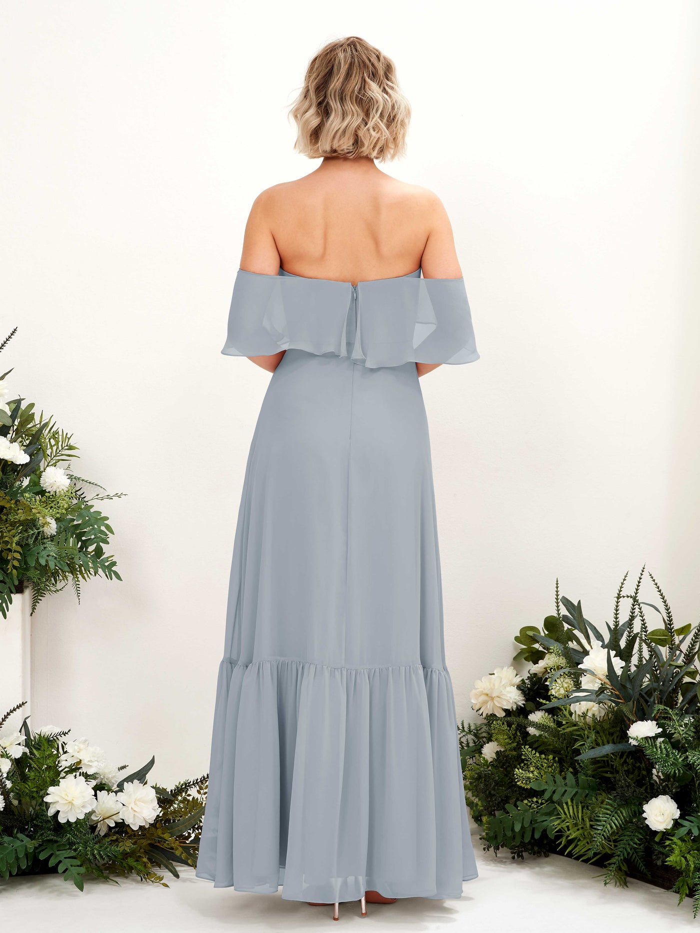 Carlyna Joie A-Line Dove Bridesmaid Dress Maxi Sleeveless Off the Shoulder Dress Back View