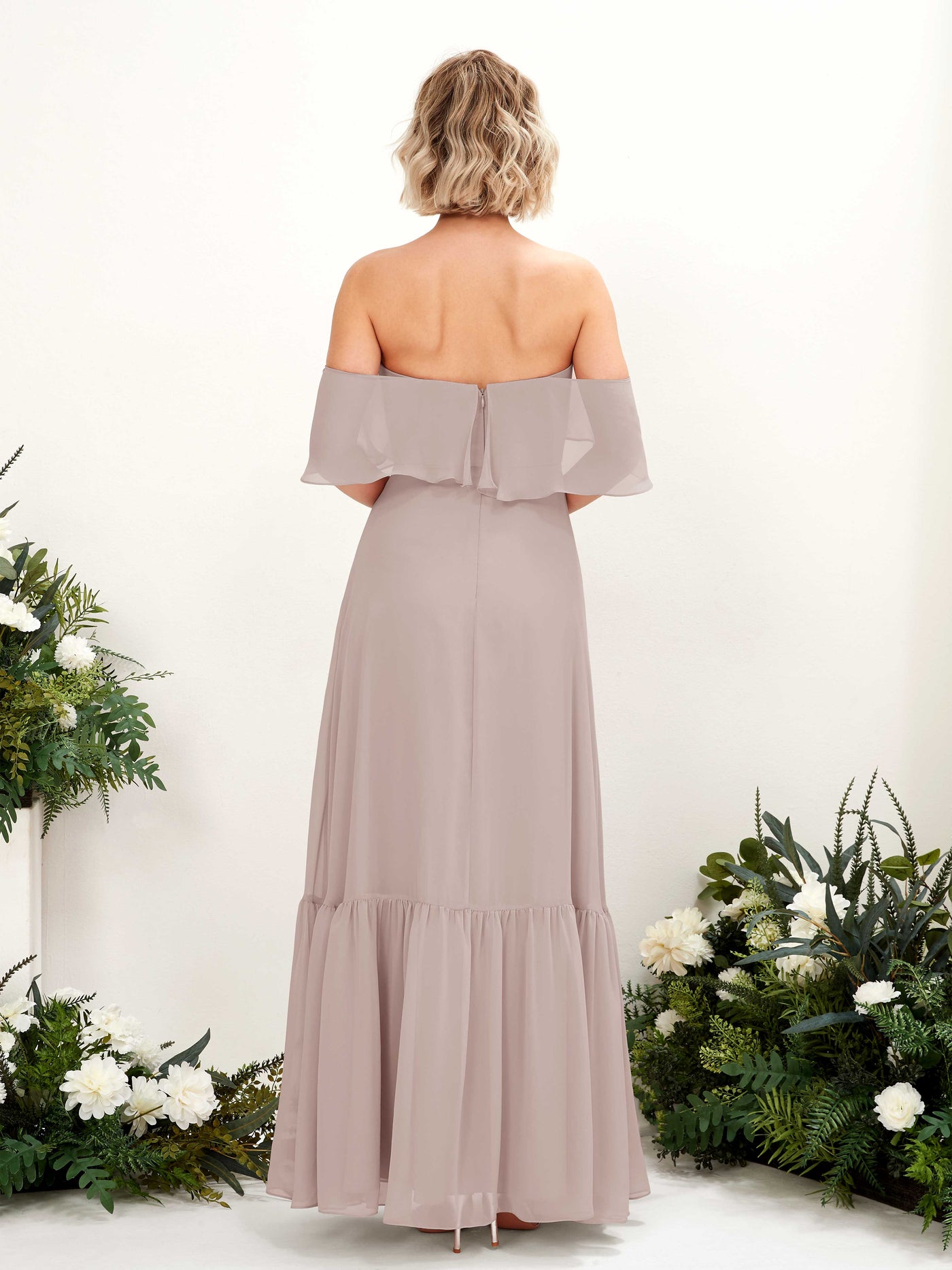 Carlyna Joie A-Line Biscotti Bridesmaid Dress Maxi Sleeveless Off the Shoulder Dress Back View
