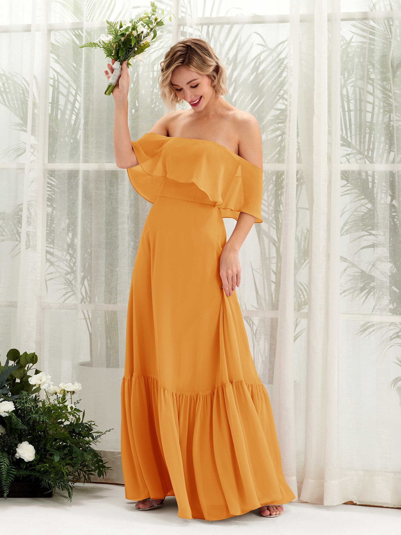 Carlyna Joie A-Line Mango Bridesmaid Dress Maxi Sleeveless Off the Shoulder Dress Front View