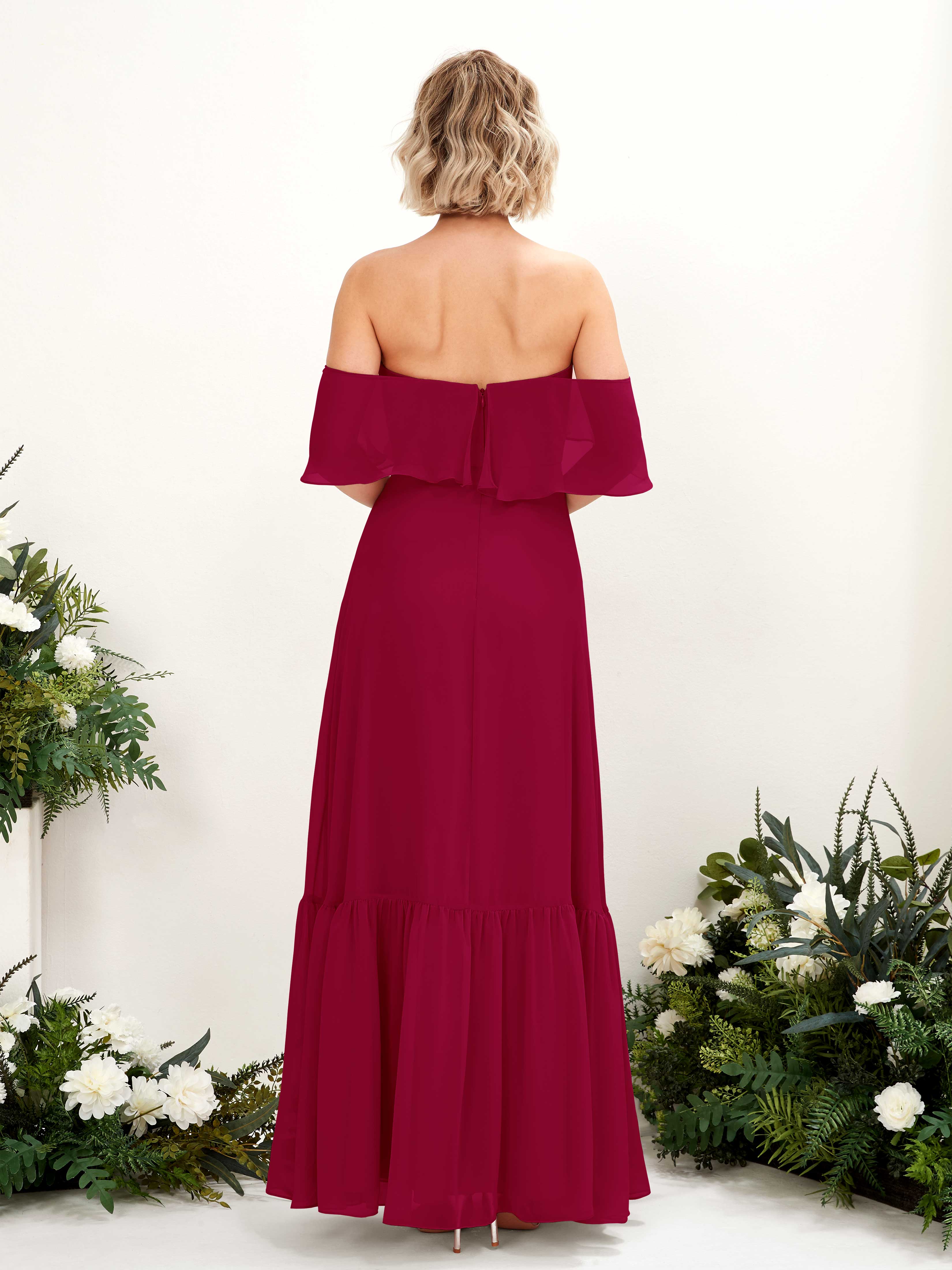 Carlyna Joie A-Line Burgundy Bridesmaid Dress Maxi Sleeveless Off the Shoulder Dress Front View