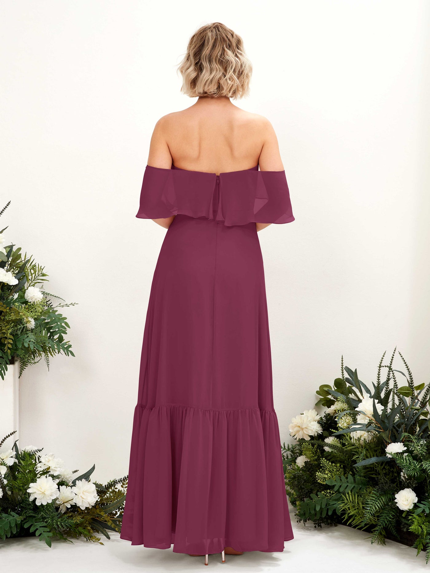 Carlyna Joie A-Line Burgundy Bridesmaid Dress Maxi Sleeveless Off the Shoulder Dress Back View