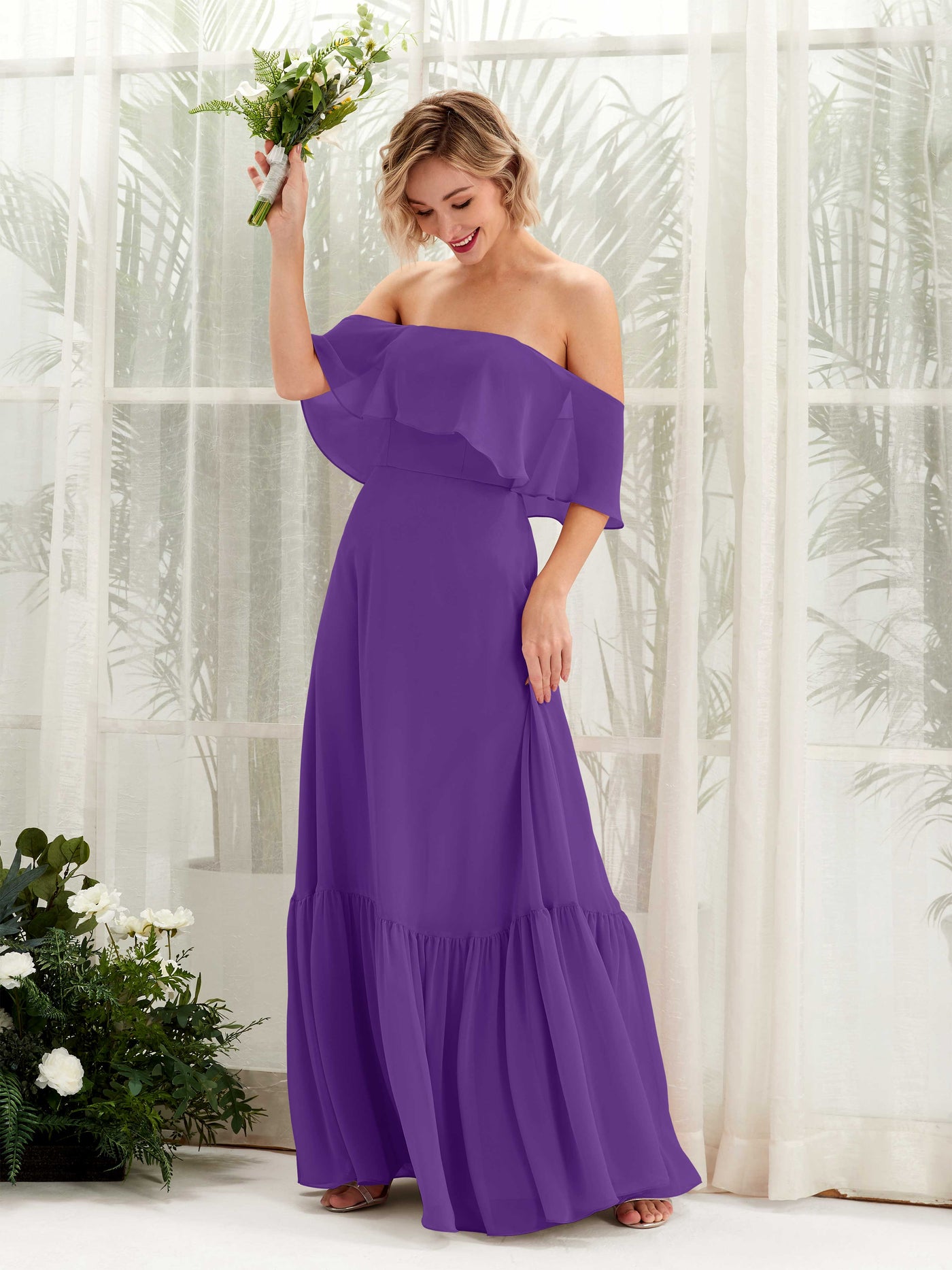Carlyna Joie A-Line Purple Bridesmaid Dress Maxi Sleeveless Off the Shoulder Dress Front View