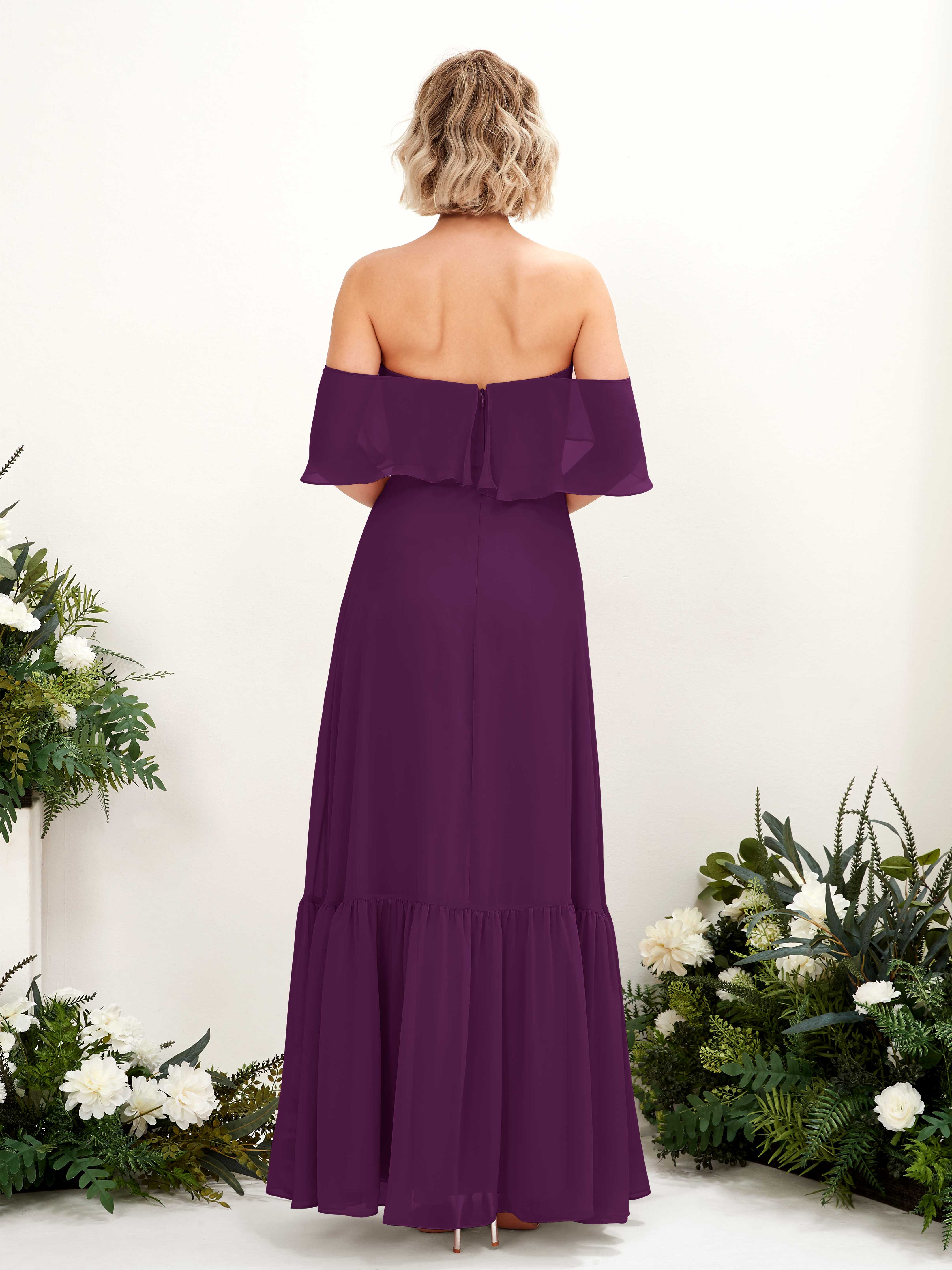 Carlyna Joie A-Line Grape Bridesmaid Dress Maxi Sleeveless Off the Shoulder Dress Front View