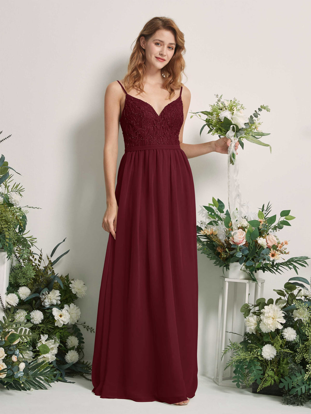 Burgundy Chiffon A-Line V-Neck Strappy Back Maxi Dress