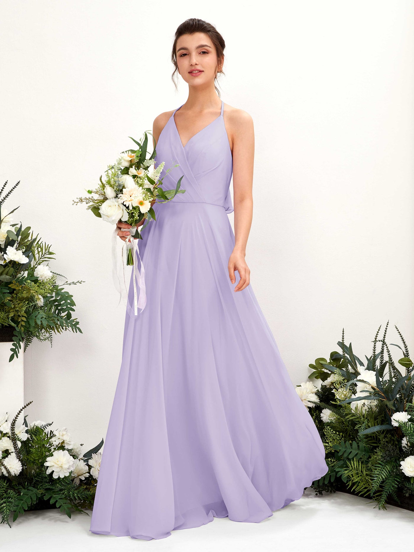 Carlyna Launo A-Line Orchid Mist Bridesmaid Dress Maxi Sleeveless V-Neck Dress Front View
