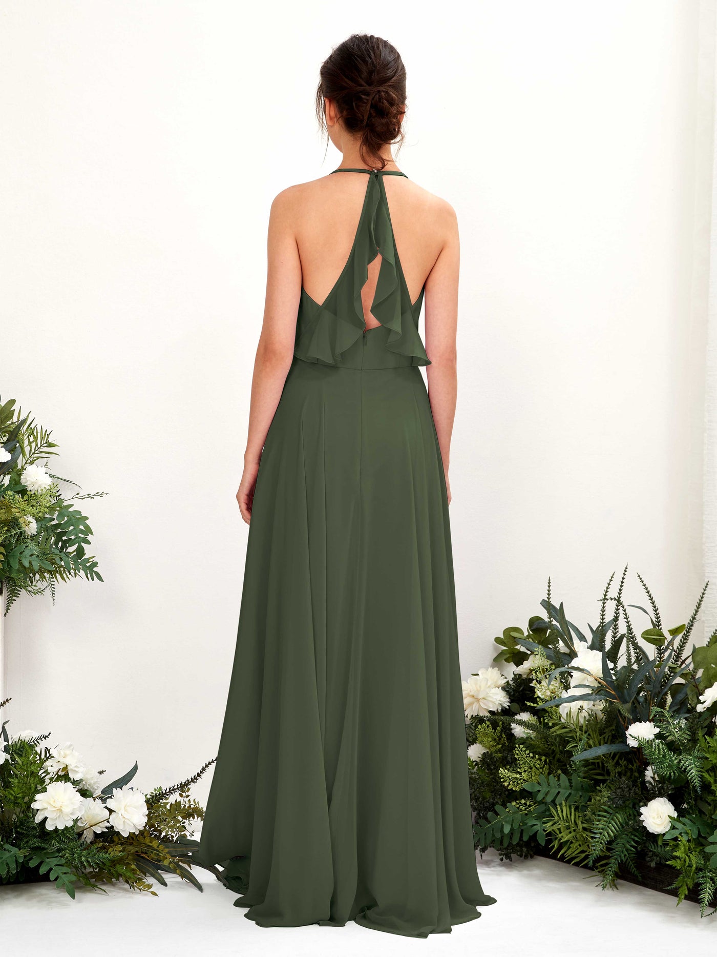 Carlyna Launo A-Line Martini Olive Bridesmaid Dress Maxi Sleeveless V-Neck Dress Back View