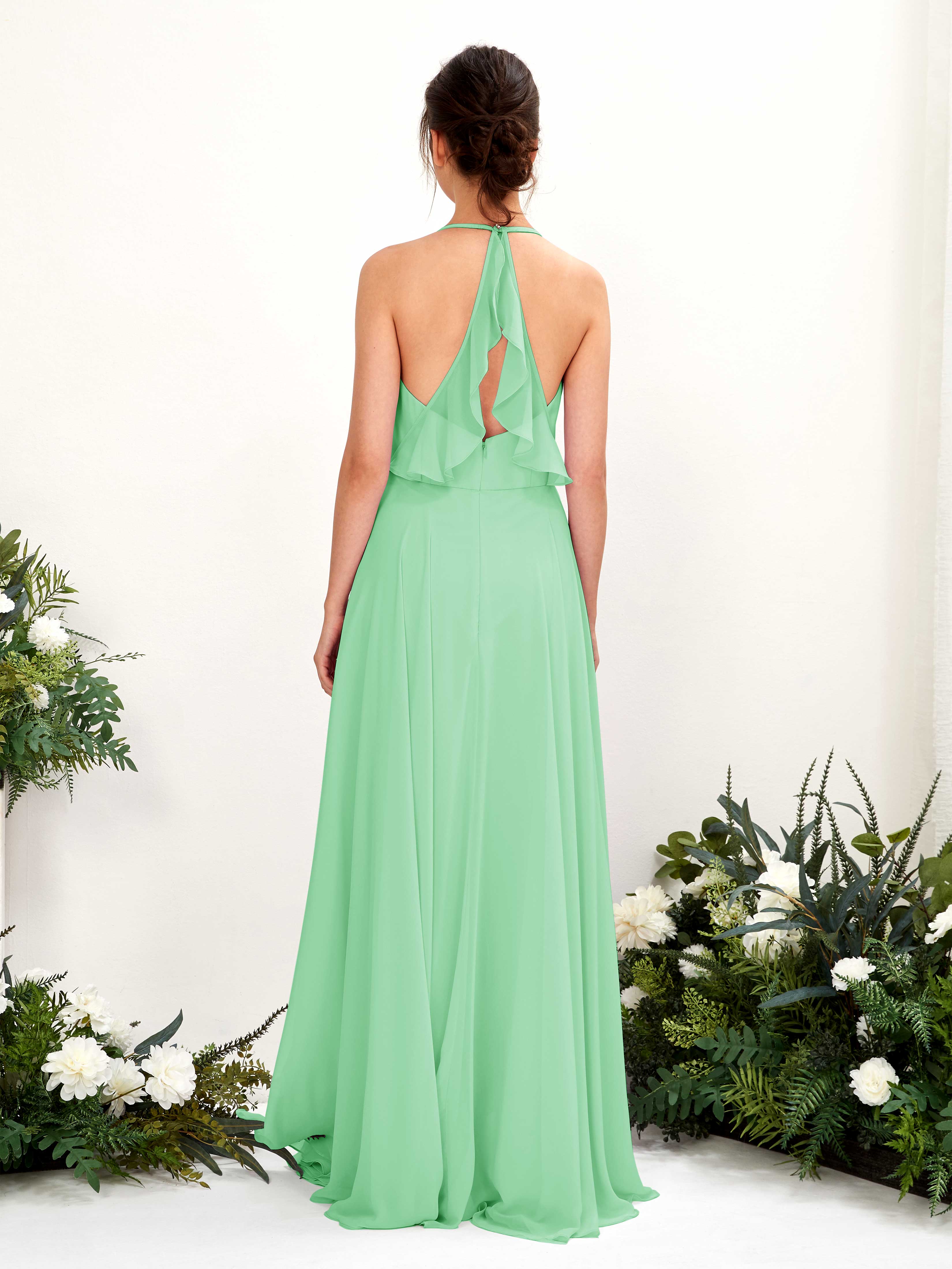 Mint Green Chiffon A-Line V-Neck Strappy Back Maxi Dress