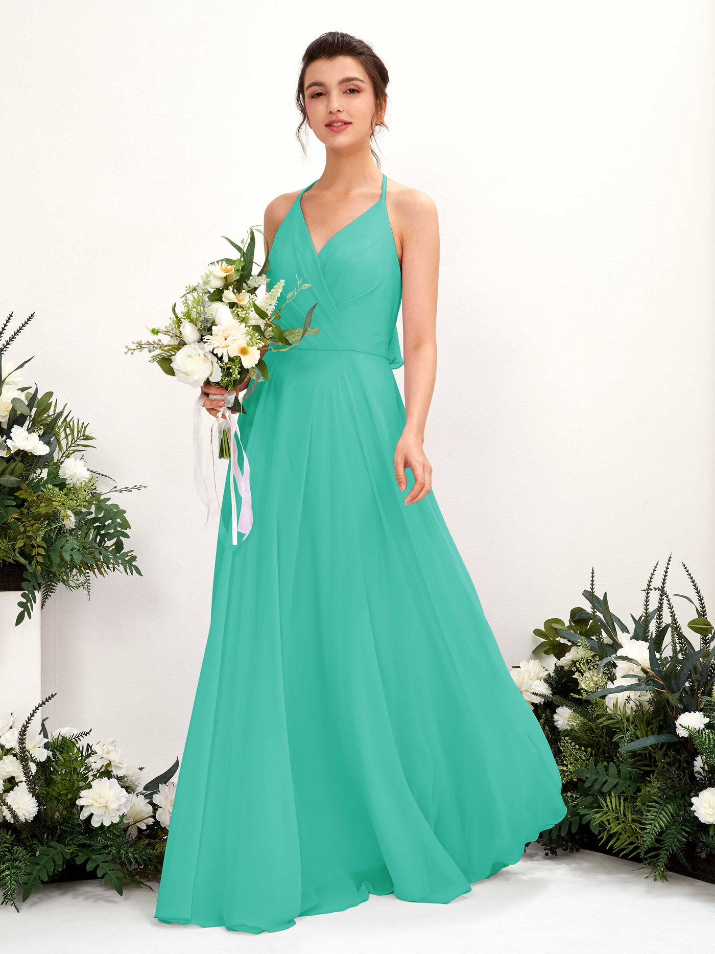 Carlyna Launo A-Line Turquoise Bridesmaid Dress Maxi Sleeveless V-Neck Dress Front View