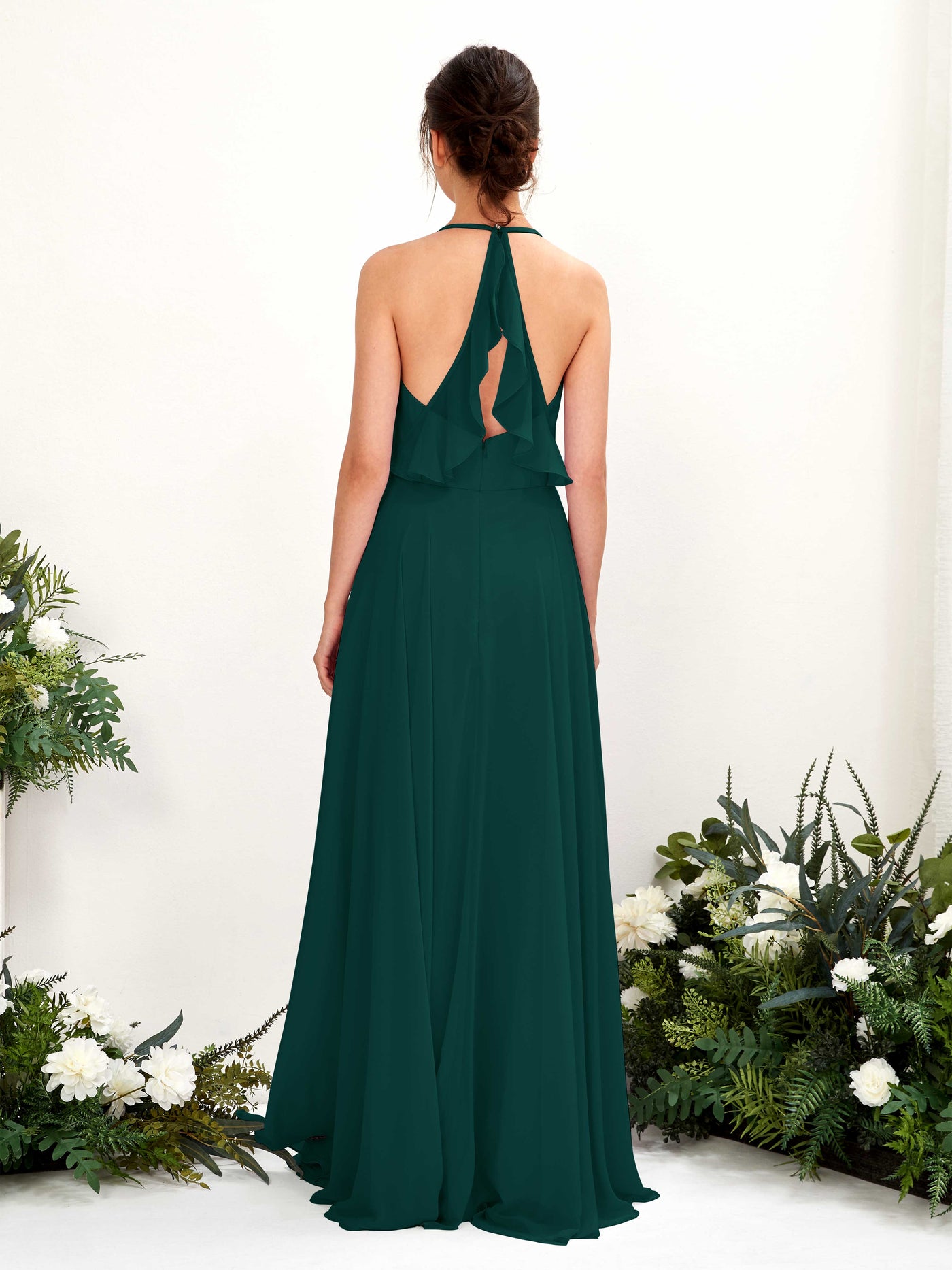 Carlyna Launo A-Line Dark Emerald Bridesmaid Dress Maxi Sleeveless V-Neck Dress Back View