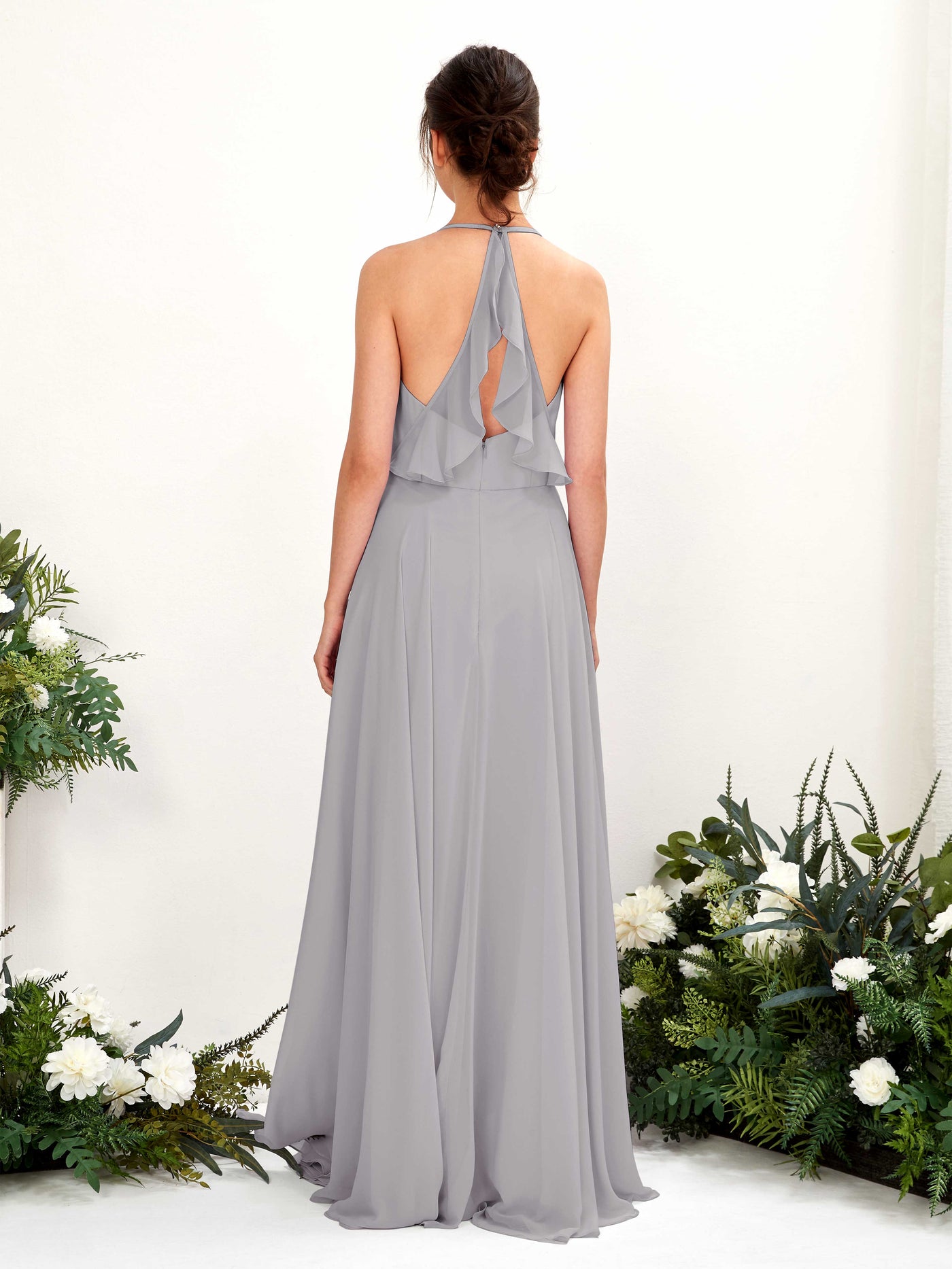 Carlyna Launo A-Line Pewter Bridesmaid Dress Maxi Sleeveless V-Neck Dress Back View