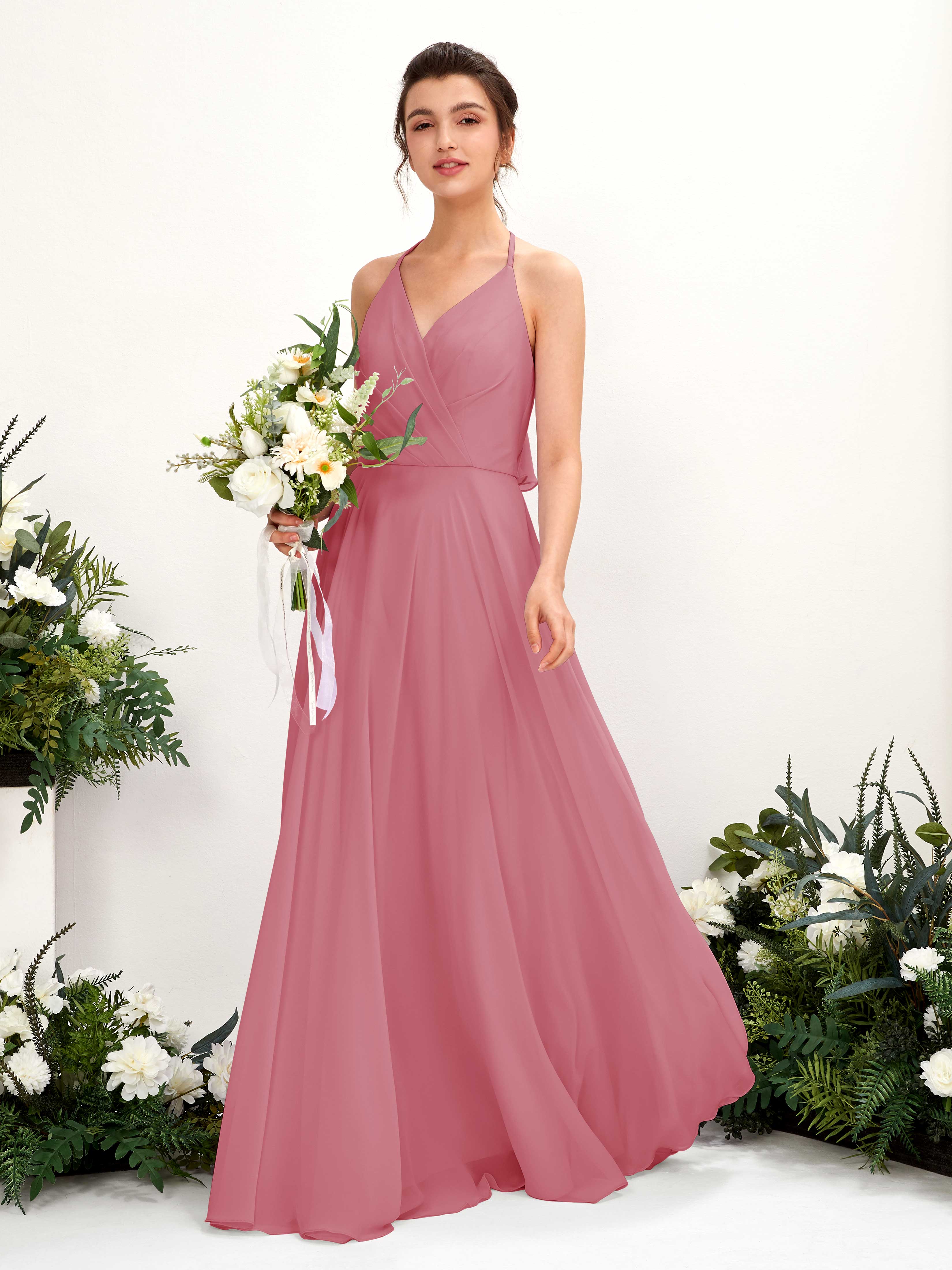 Carlyna Launo A-Line Desert Rose Bridesmaid Dress Maxi Sleeveless V-Neck Dress Front View