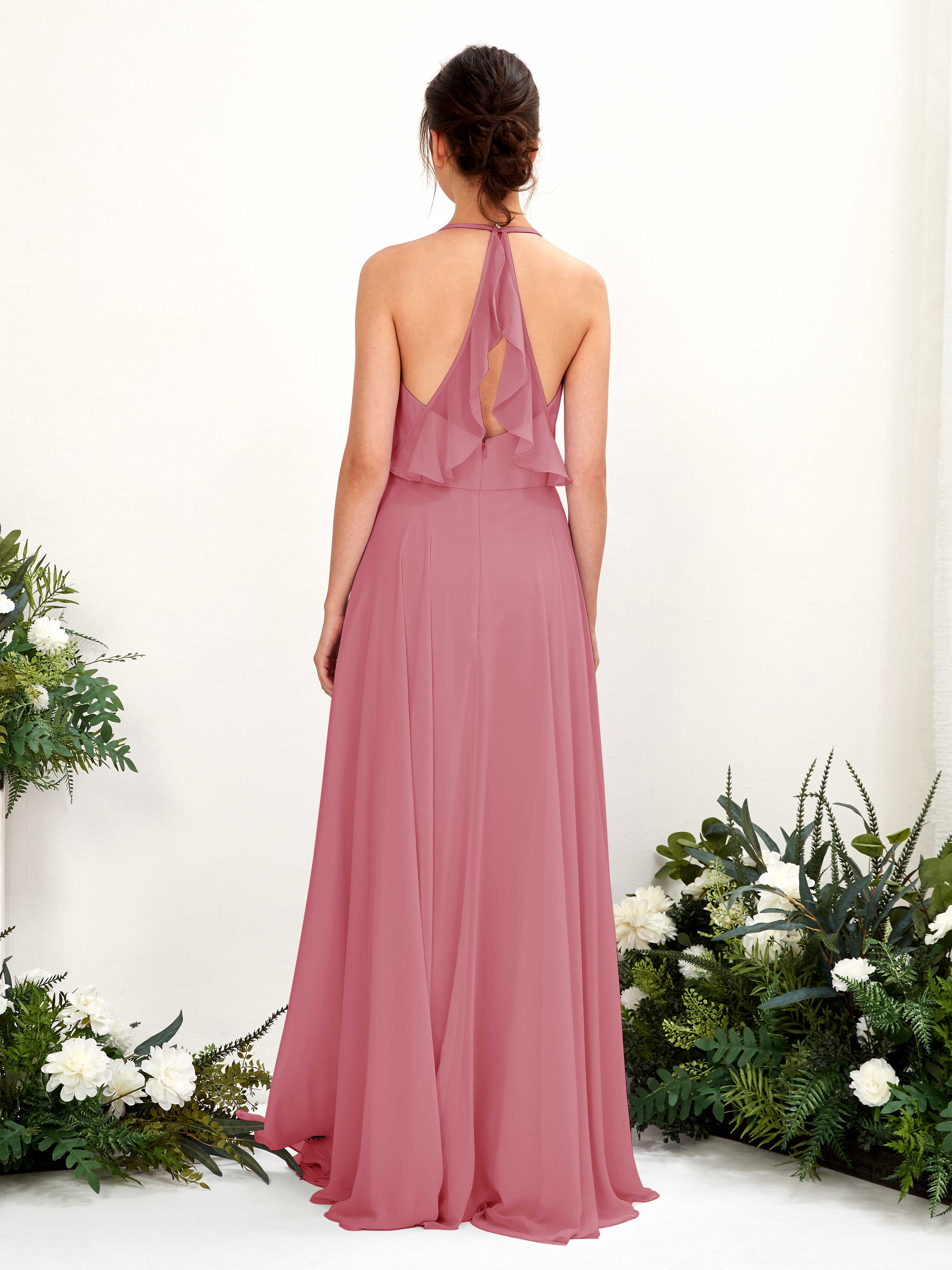 Carlyna Launo A-Line Dusty Rose Bridesmaid Dress Maxi Sleeveless V-Neck Dress Back View
