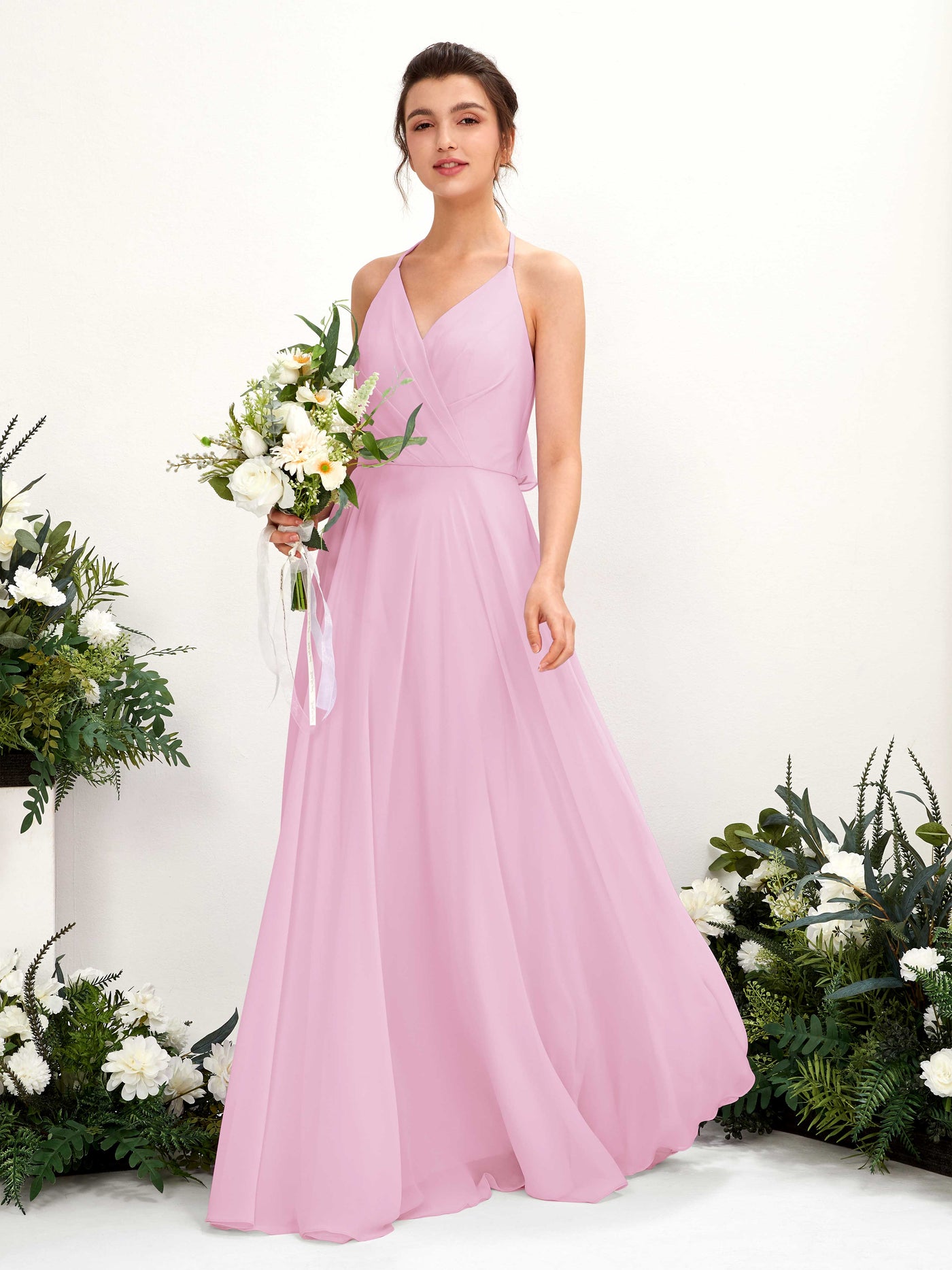 Carlyna Launo A-Line Ballet Pink Bridesmaid Dress Maxi Sleeveless V-Neck Dress Front View