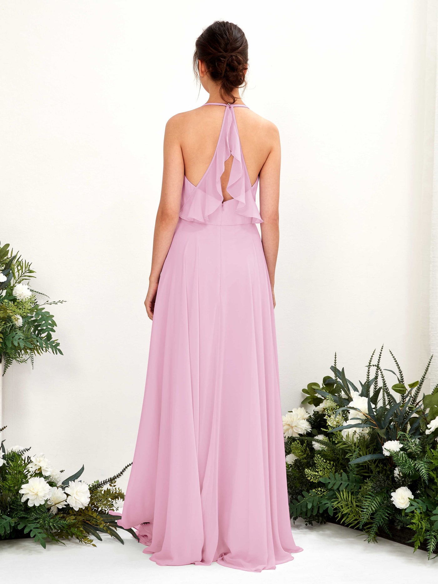 Carlyna Launo A-Line Ballet Pink Bridesmaid Dress Maxi Sleeveless V-Neck Dress Back View