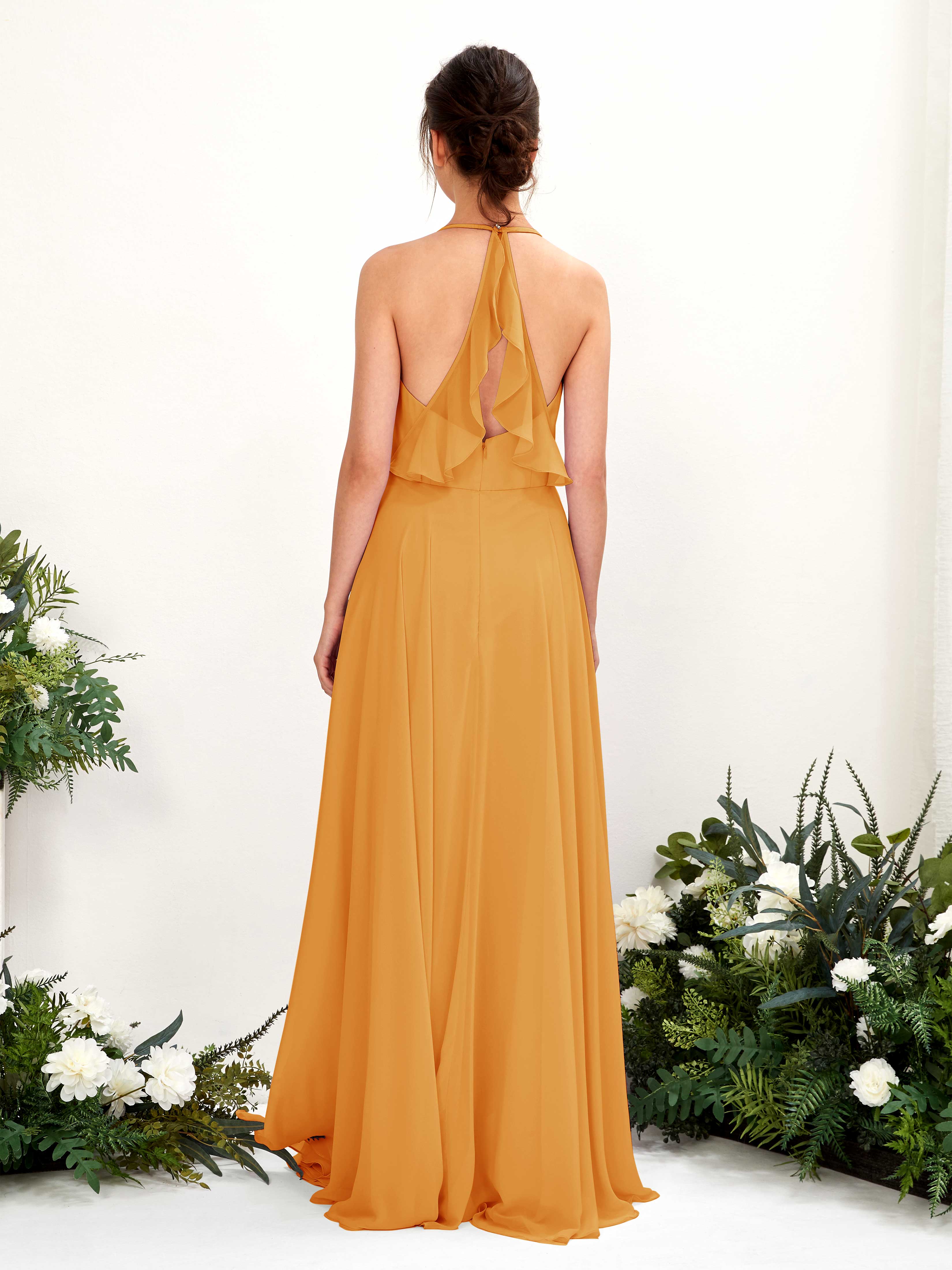 Carlyna Launo A-Line Mango Bridesmaid Dress Maxi Sleeveless V-Neck Dress Back View