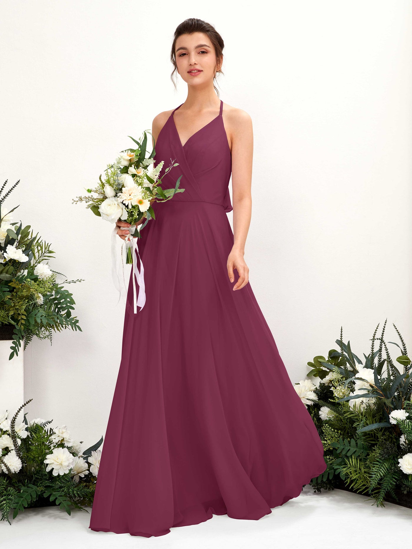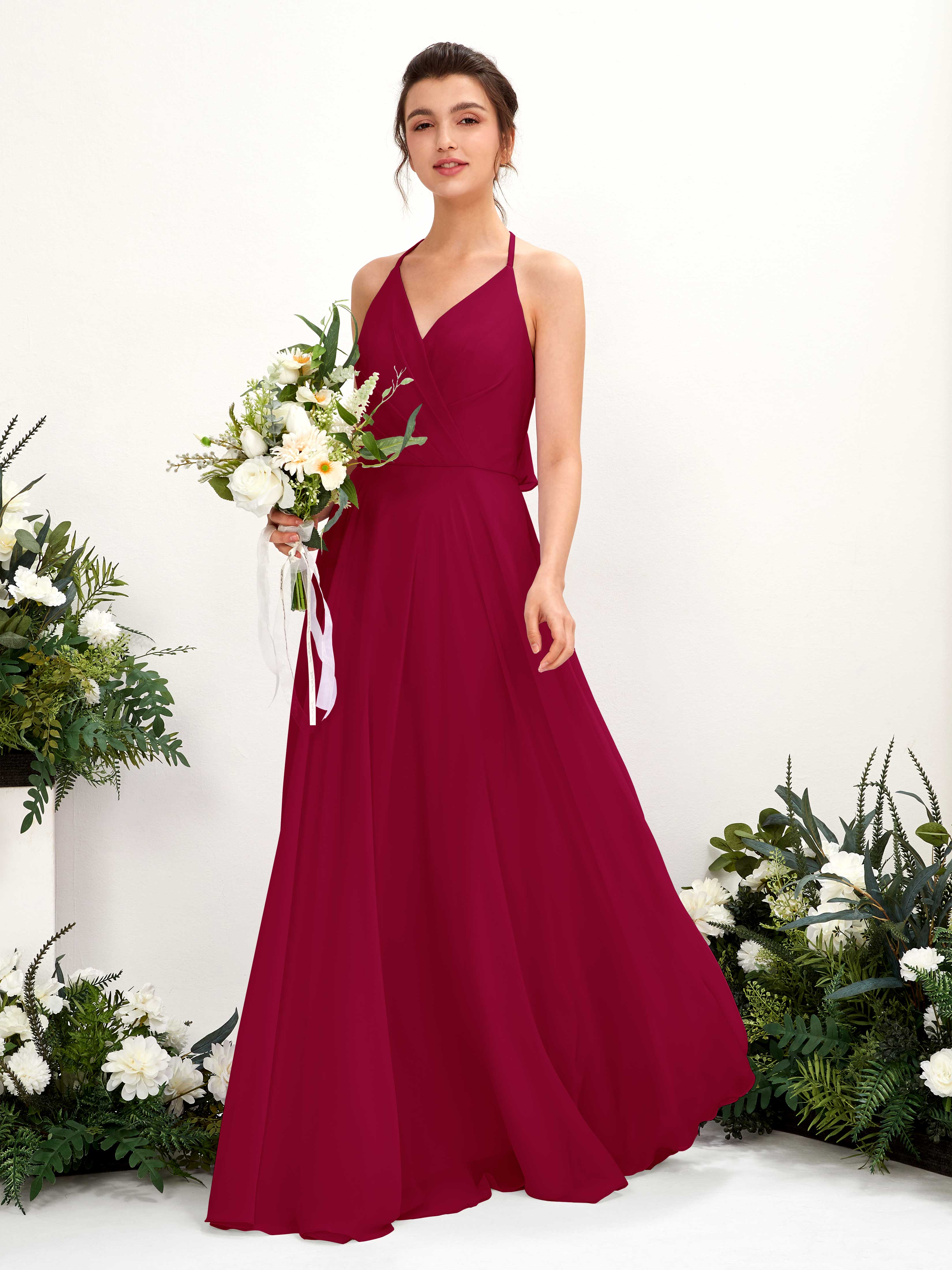 Carlyna Launo A-Line Chianti Bridesmaid Dress Maxi Sleeveless V-Neck Dress Front View