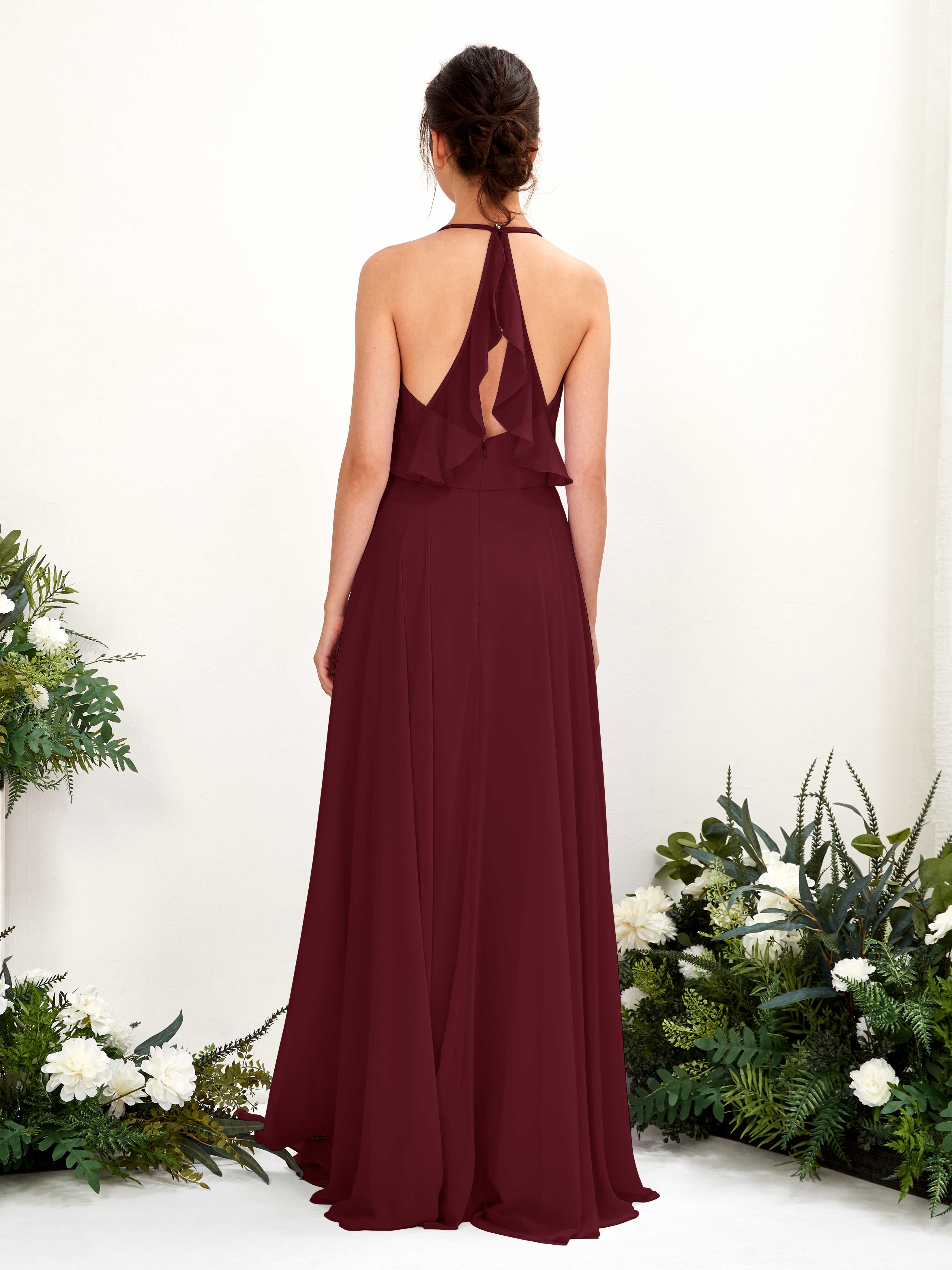 Carlyna Launo A-Line Burgundy Bridesmaid Dress Maxi Sleeveless V-Neck Dress Back View