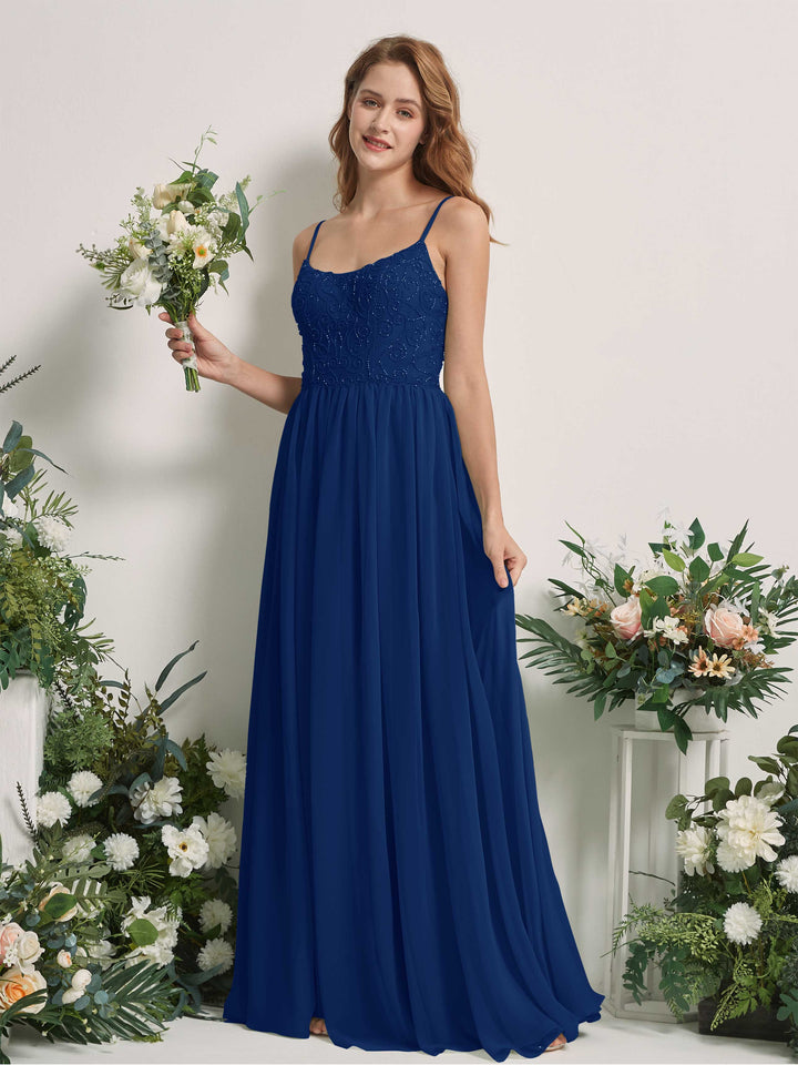 Royal Blue Chiffon A-Line Scoop Neck Strappy Back Maxi Dress