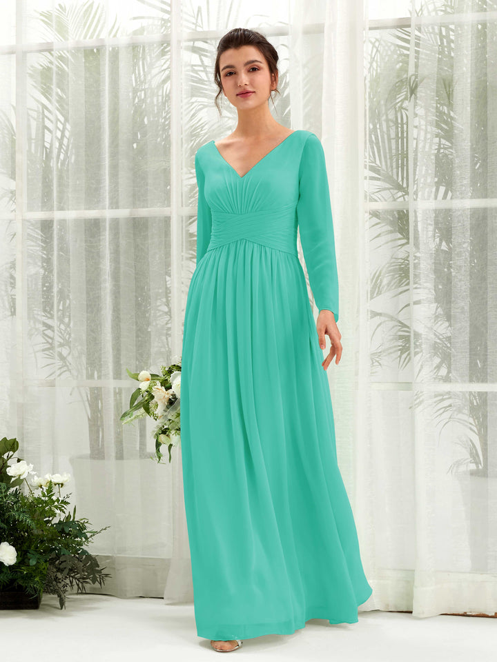 Tiffany Chiffon A-Line V-Neck Long Sleeve Maxi Dress