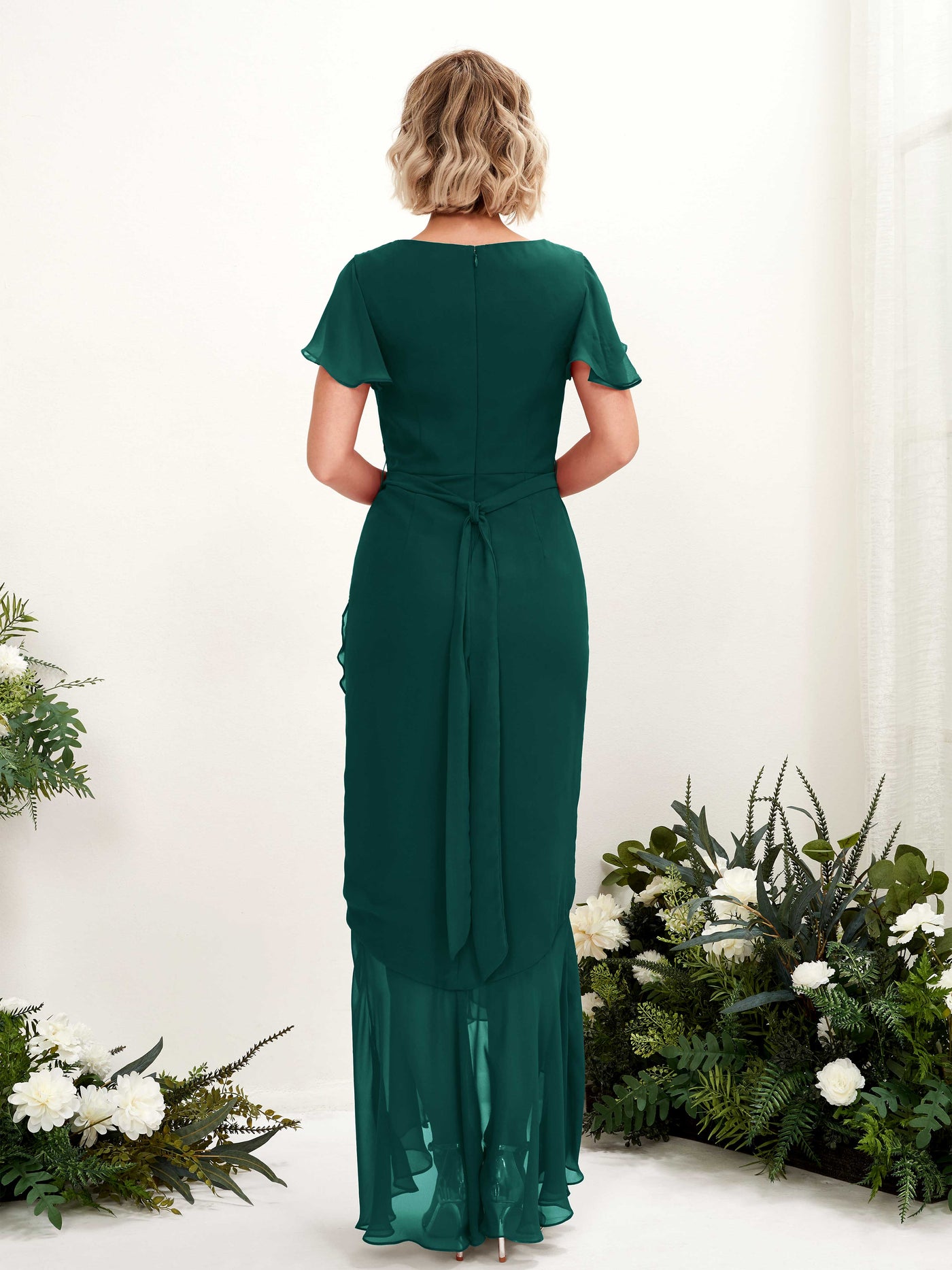Carlyna Eartha Mermaid Dark Emerald Bridesmaid Dress Maxi Cap Sleeve V-Neck Dress Front View