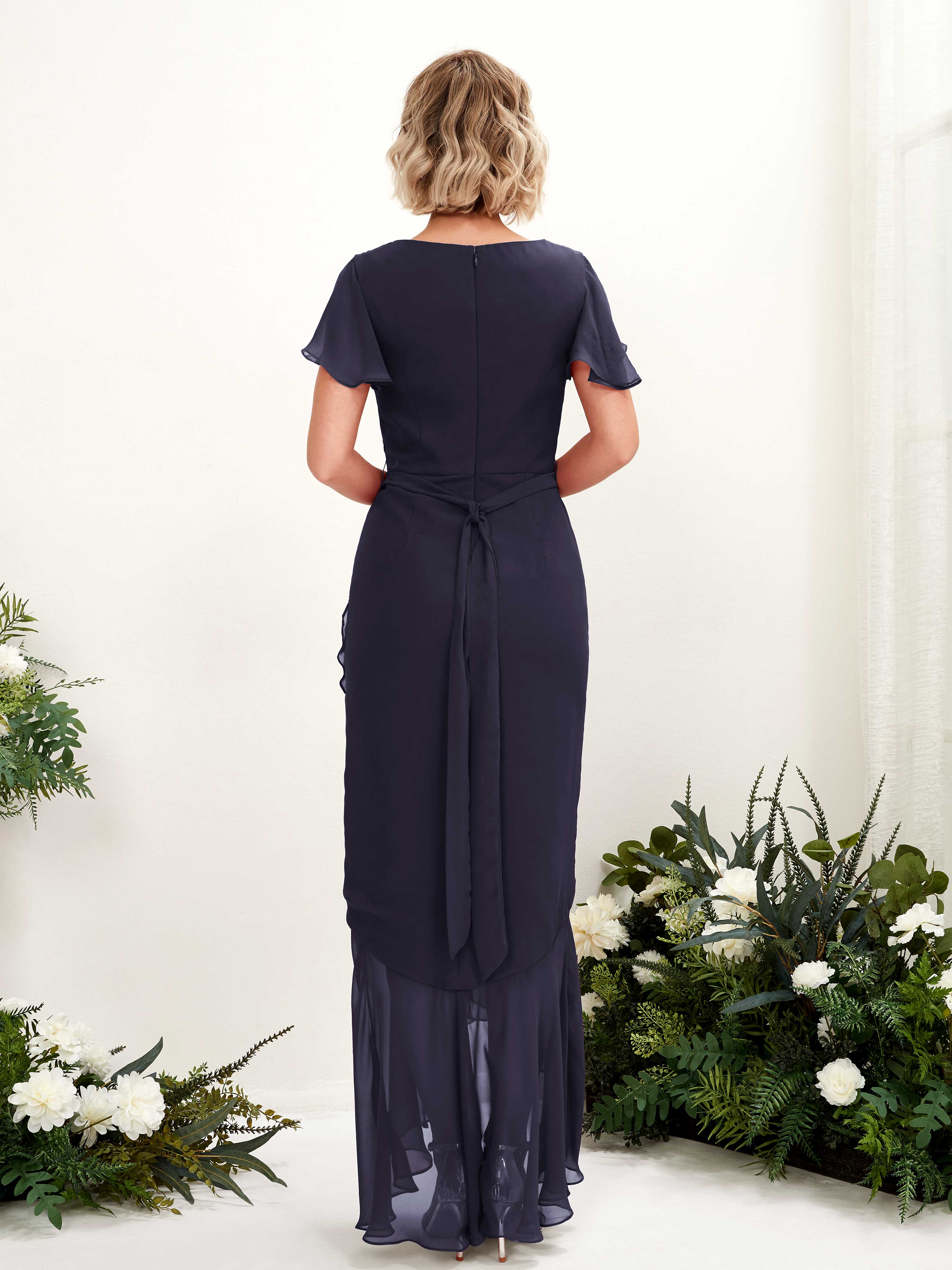 Carlyna Eartha Mermaid Dark Navy Bridesmaid Dress Maxi Cap Sleeve V-Neck Dress Back View
