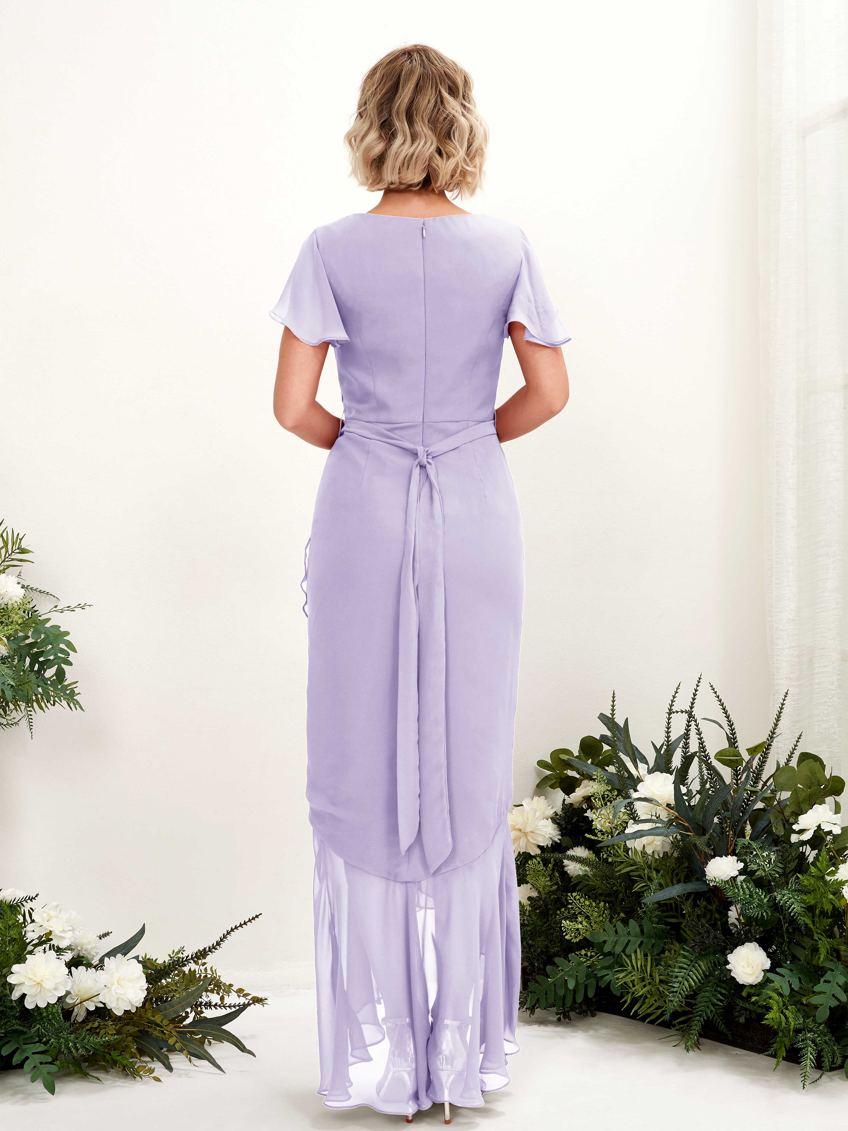 Carlyna Eartha Mermaid Lilac Bridesmaid Dress Maxi Cap Sleeve V-Neck Dress Back View
