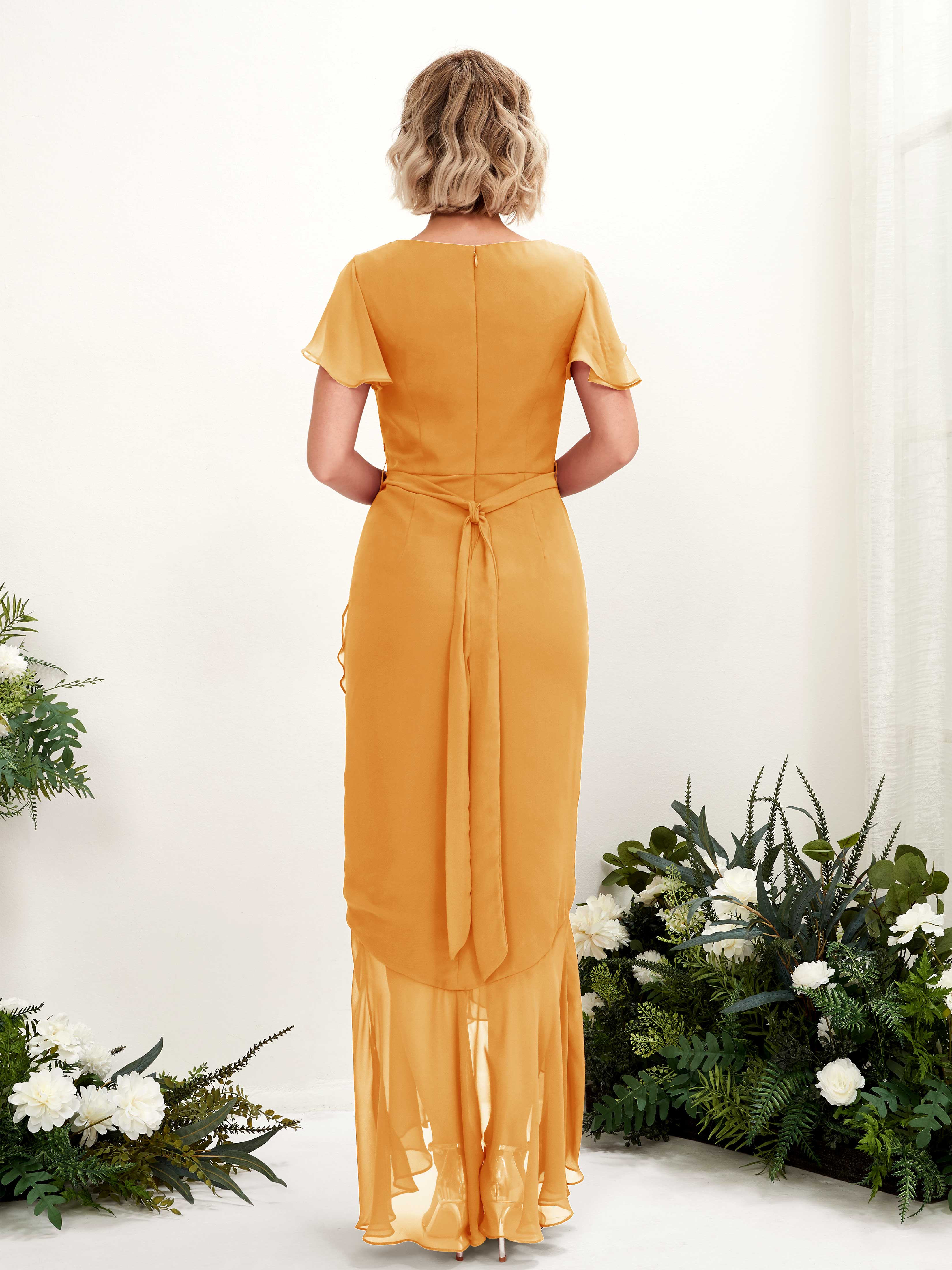 Carlyna Eartha Mermaid Mango Bridesmaid Dress Maxi Cap Sleeve V-Neck Dress Back View
