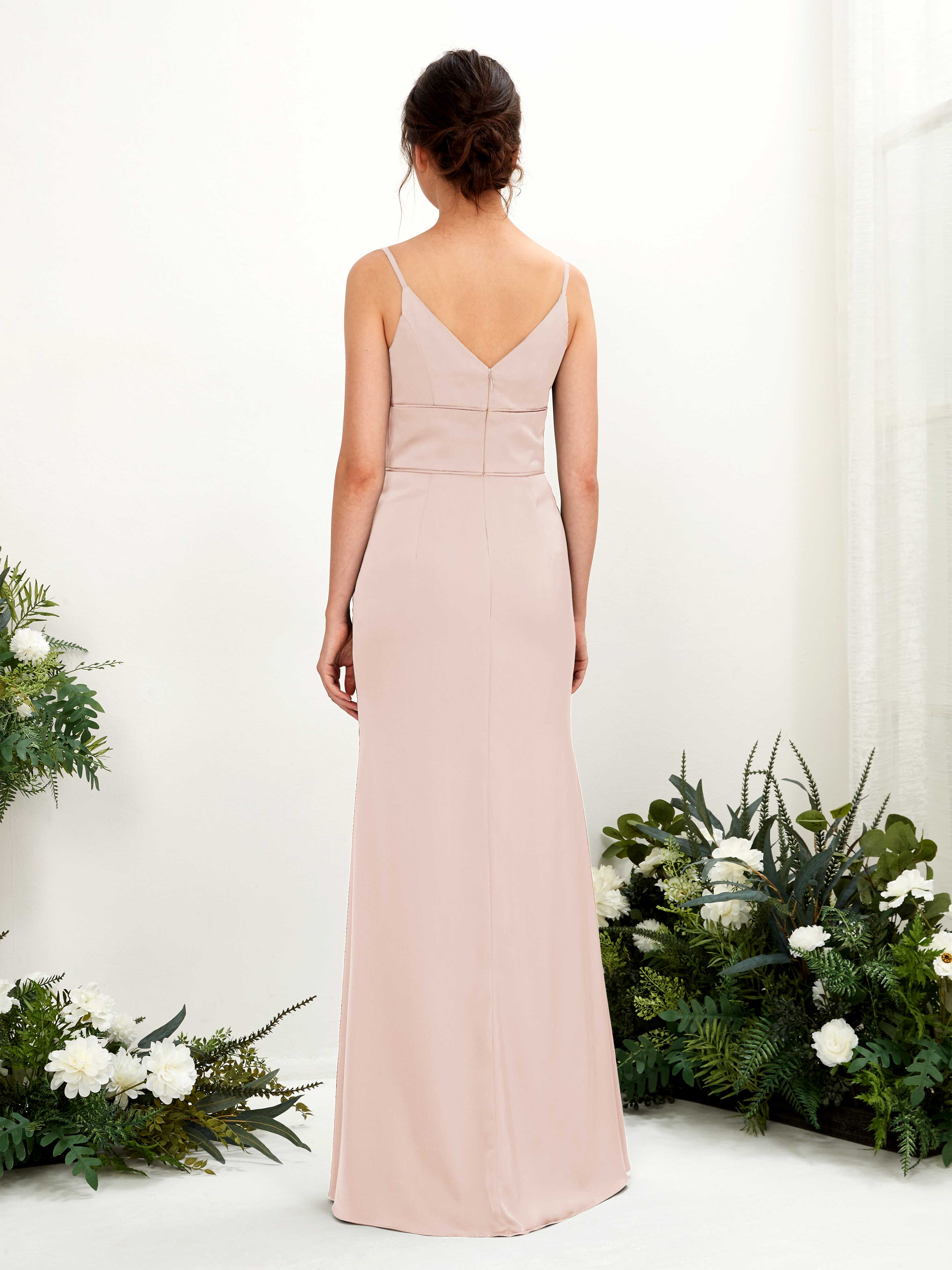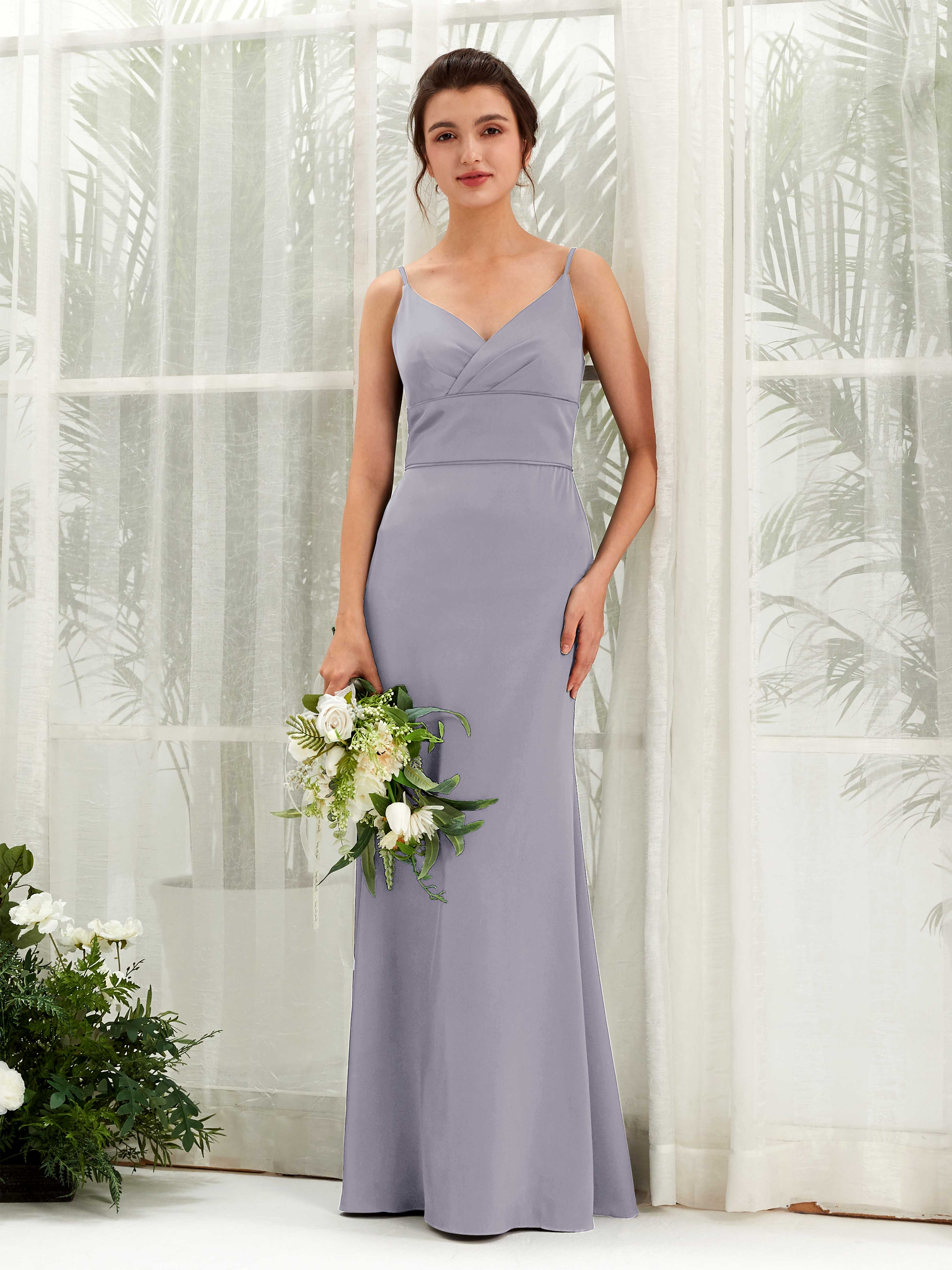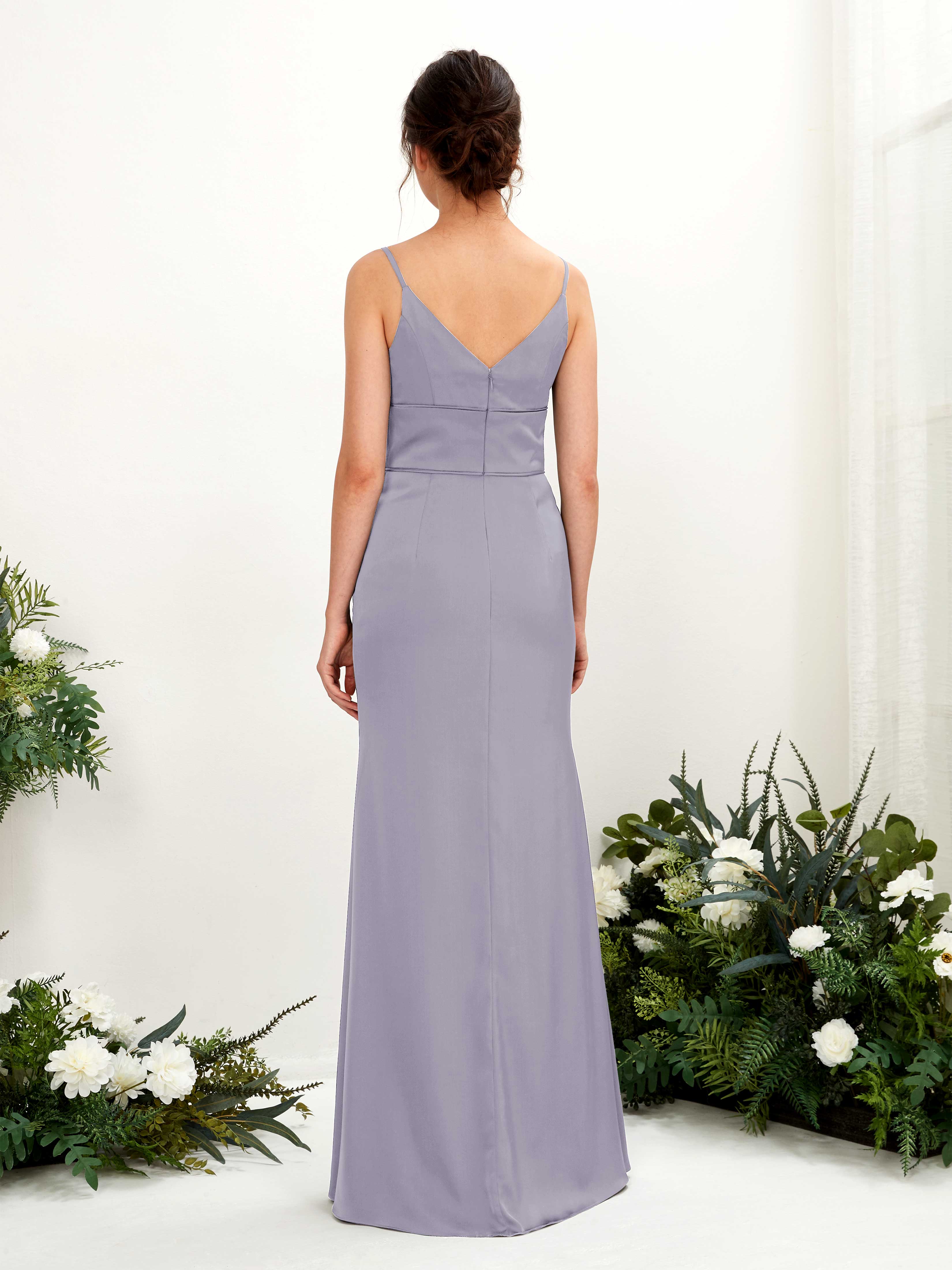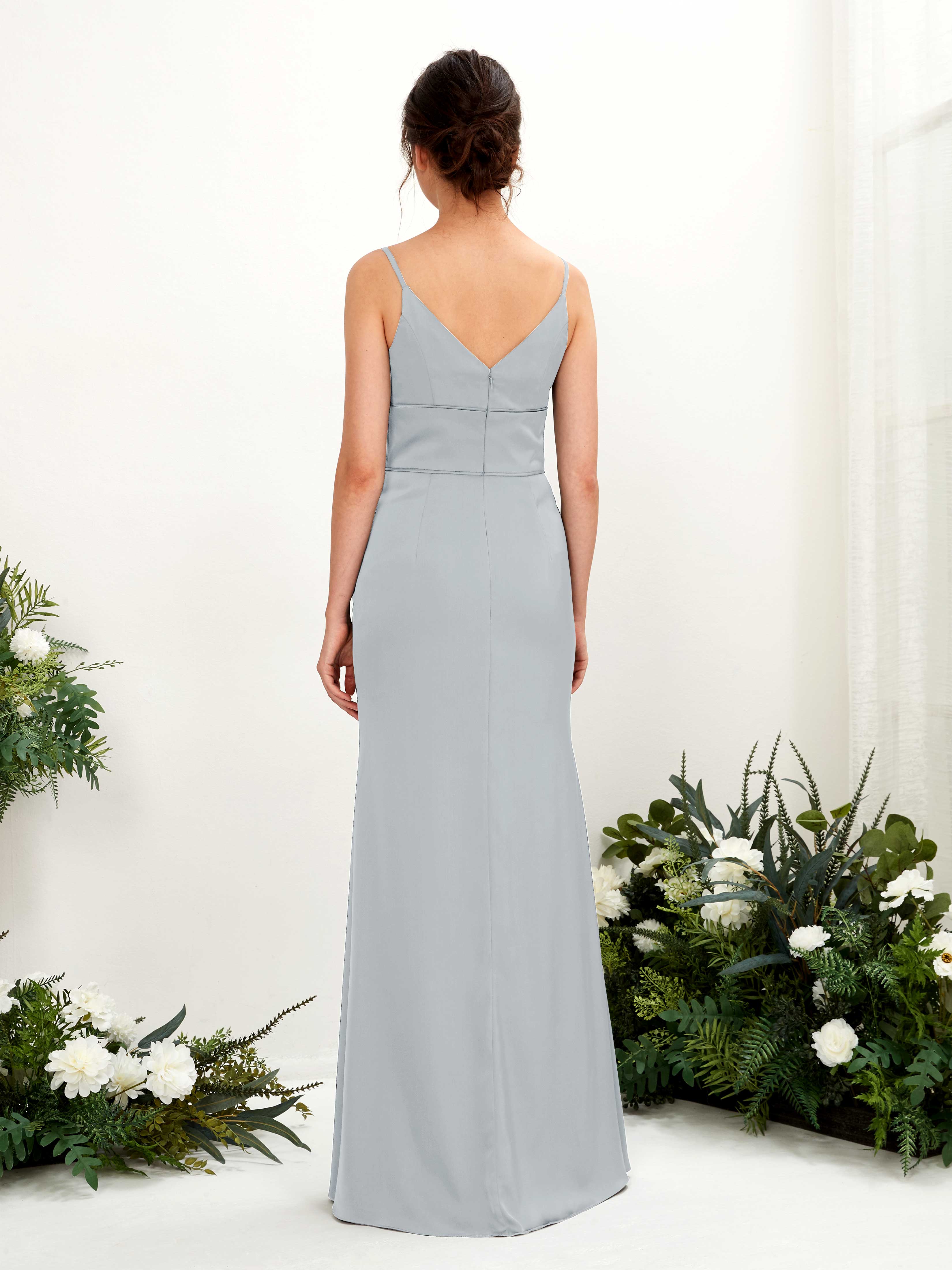 Dove Satin Mermaid V-Neck Strappy Back Maxi Dress