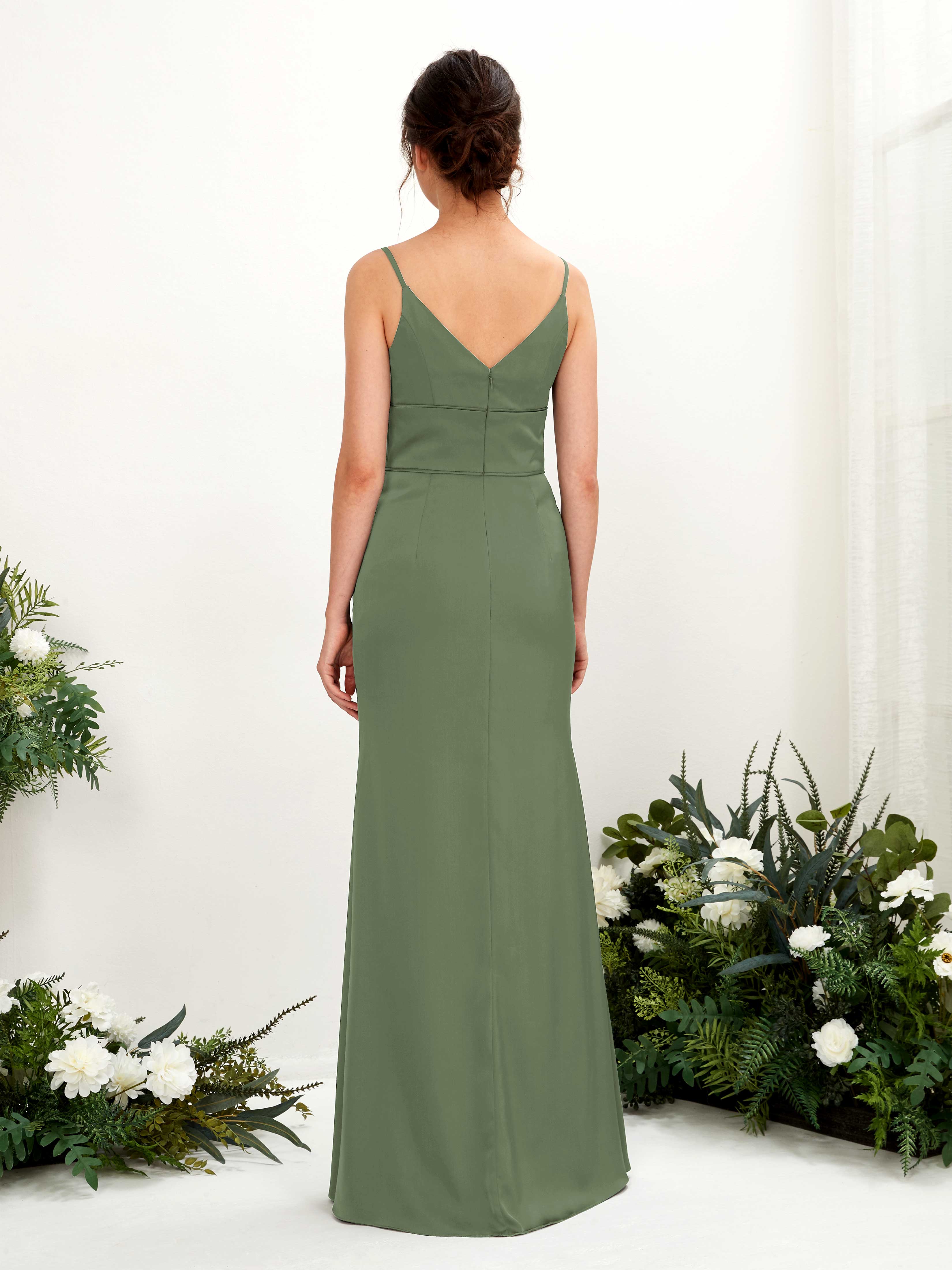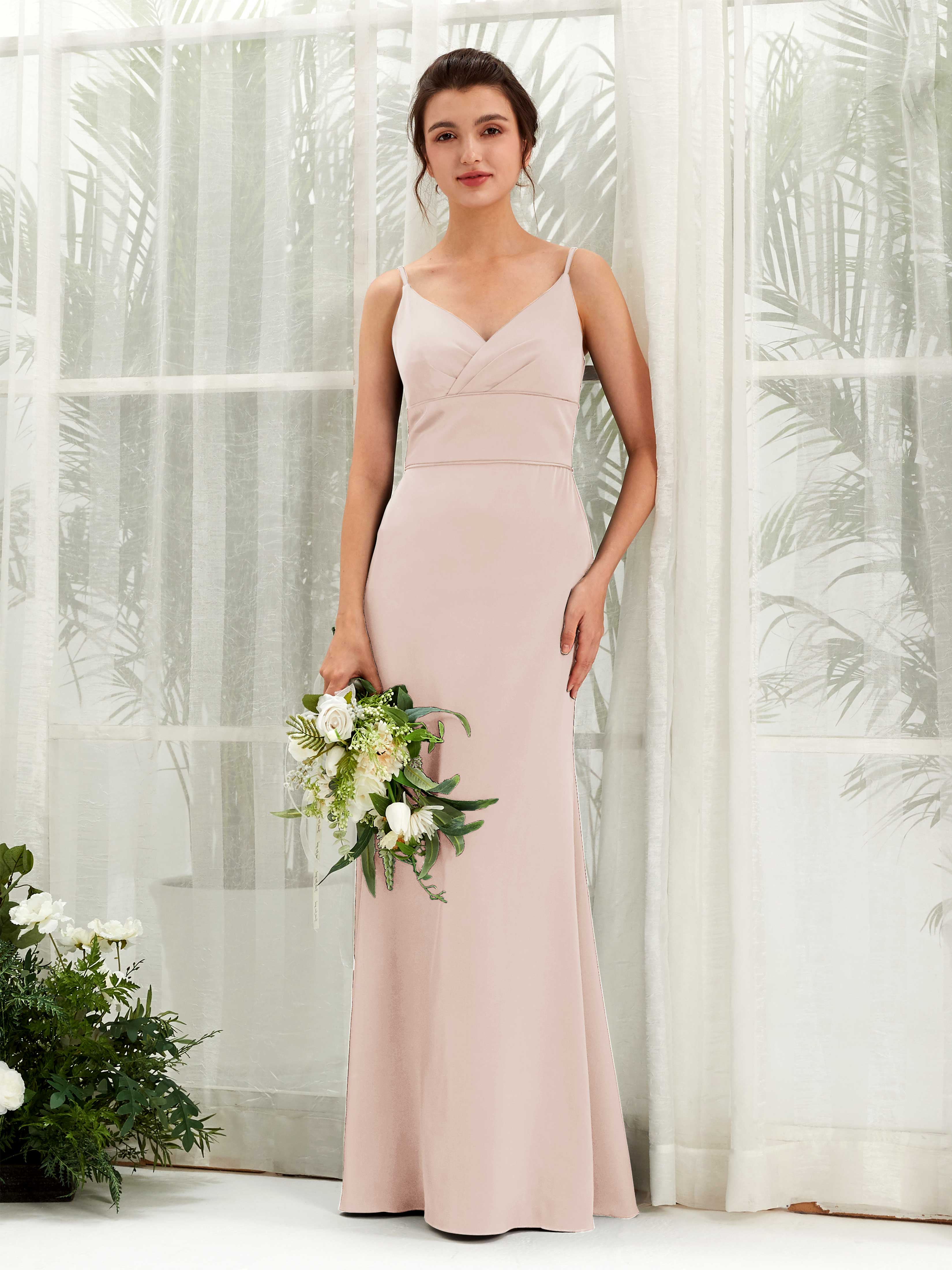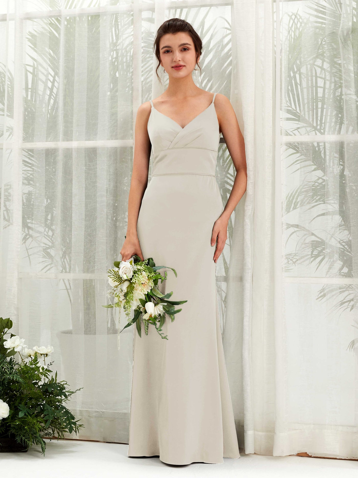 Dove Satin Mermaid V-Neck Strappy Back Maxi Dress