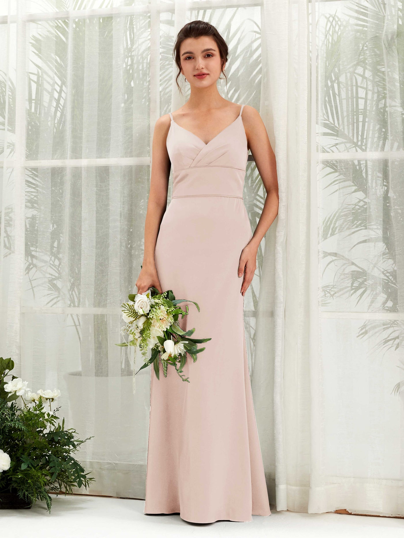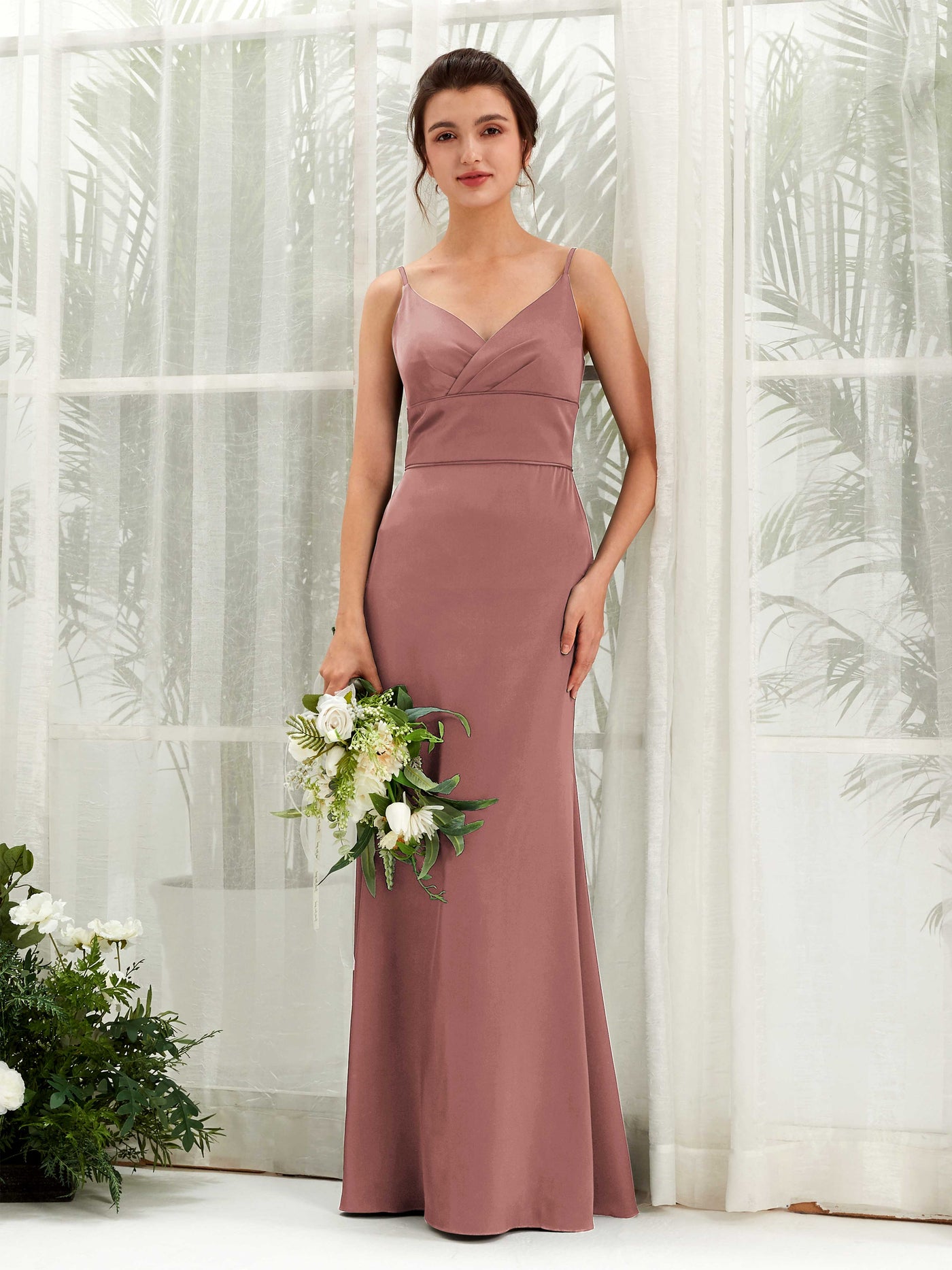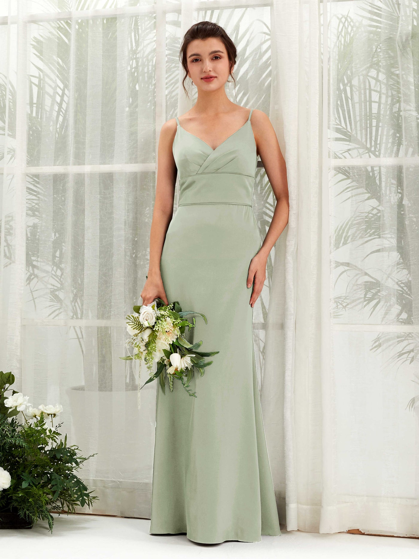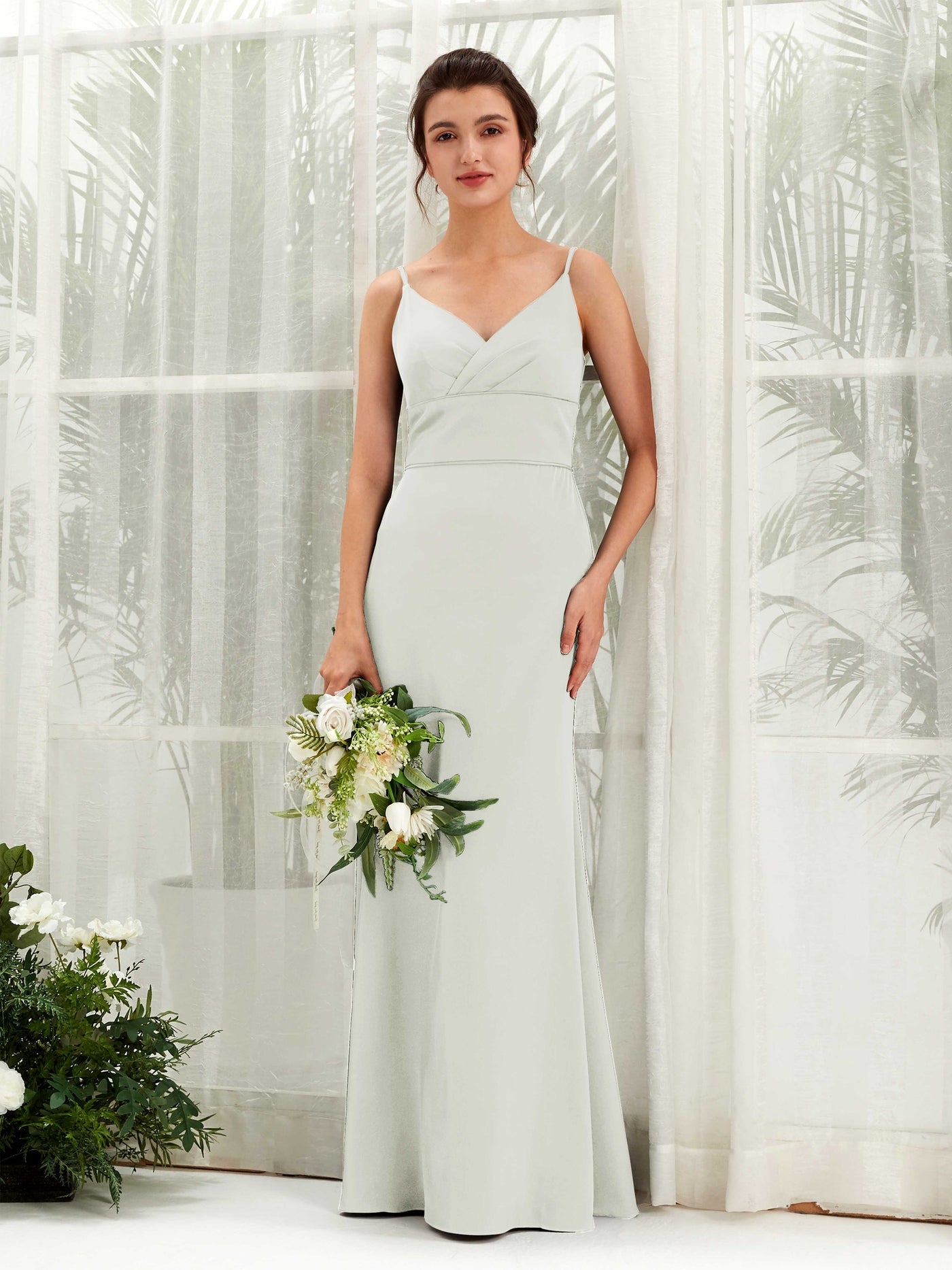Dove Satin Mermaid V-Neck Strappy Back Maxi Dress