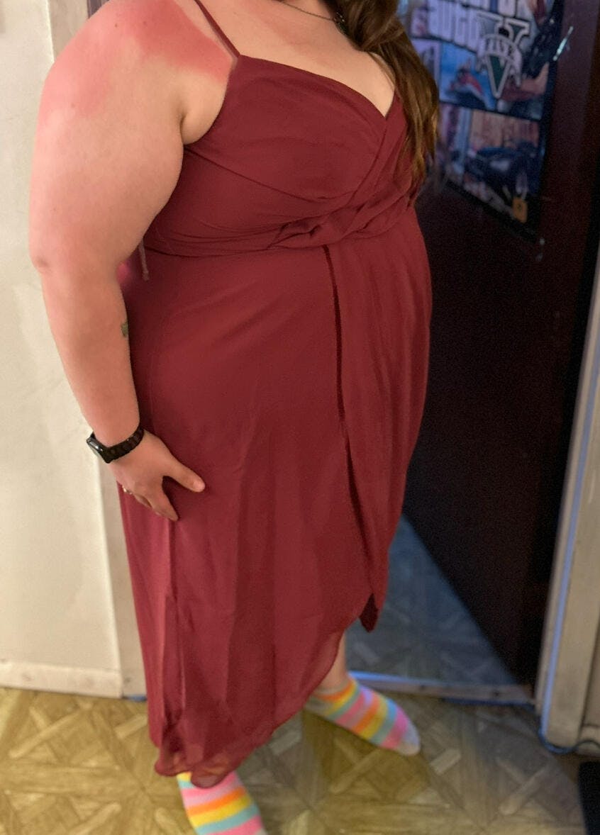They should update their pictures where the model sticks her knee out showing the huge slit like normally you see with these types of dresses which is not what I wanted at all but it’s too late now!