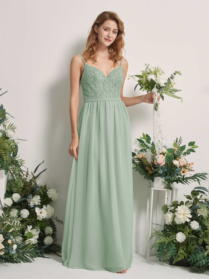 Sage Green Chiffon A-Line V-Neck Strappy Back Maxi Dress