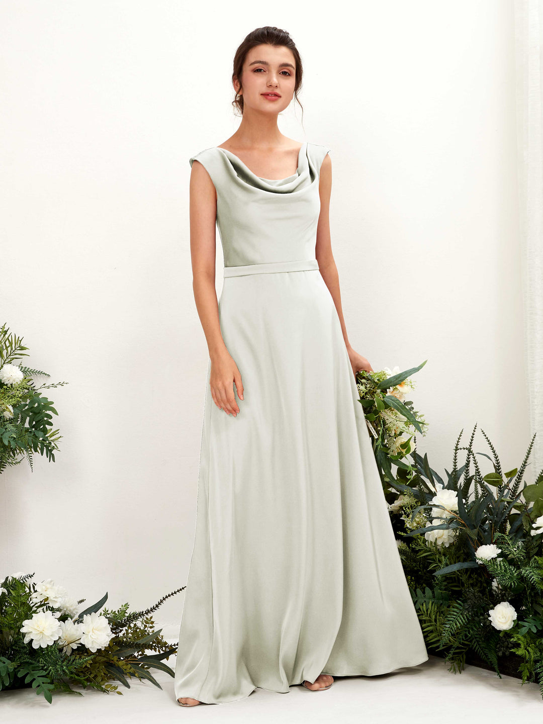 Ivory Satin A-Line Cowl Neck Maxi Dress