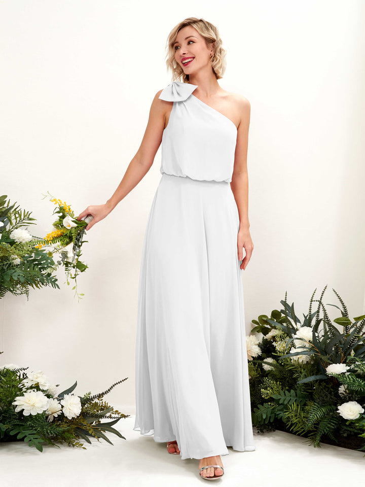 White Chiffon A-Line One Shoulder Strappy Back Maxi Dress